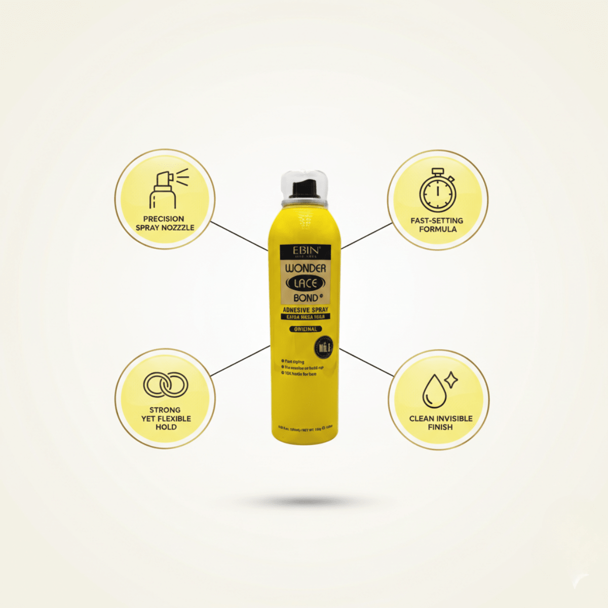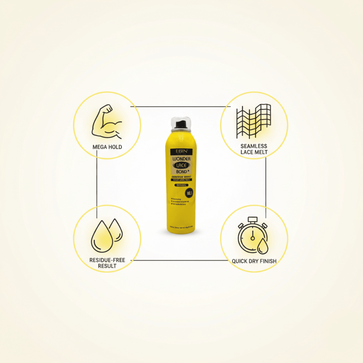 Ebin Wonder Lace Bond Wig Adhesive Spray MEGA HOLD – extrem starker, klar trocknender Halt für Lace-Fronts. Schweißfest, vegan, präzise und ideal für langanhaltende natürliche Haarlinien.