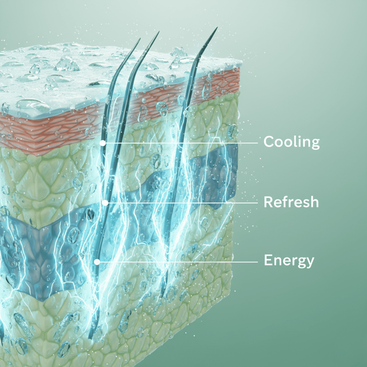 Extra starke Frische · Langanhaltende Kühlung · Belebung in jeder Anwendung
