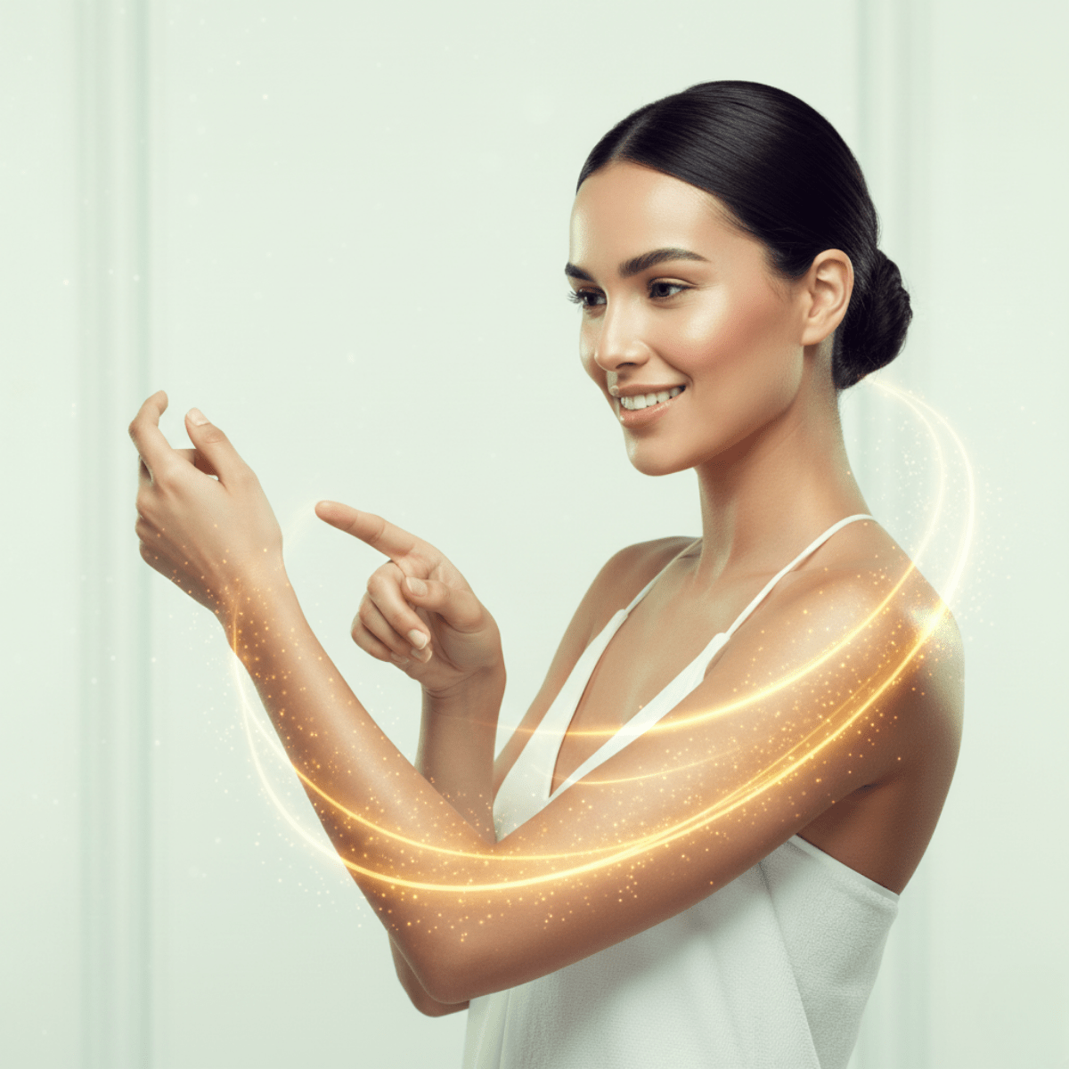 2️⃣ Sanft auf die gewünschte Hautpartieauftragen und einreiben.