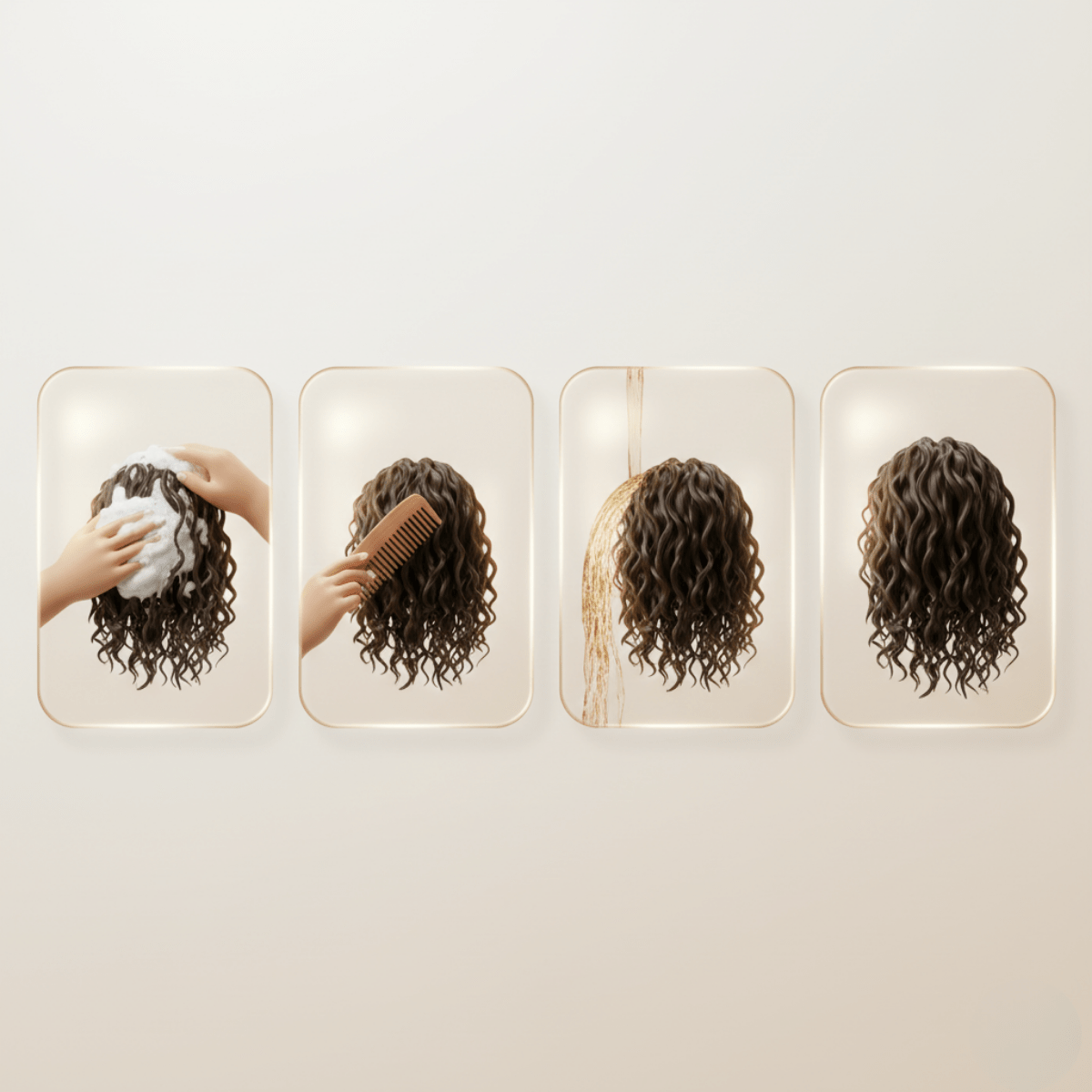 Gönn deinem Haar eine sanfte, tiefenpflegende Reinigung, die nicht nur sauber macht – sondern bereits beim Waschen entwirrt, Frizz reduziert und die natürliche Lockenstruktur sichtbar verlängert.