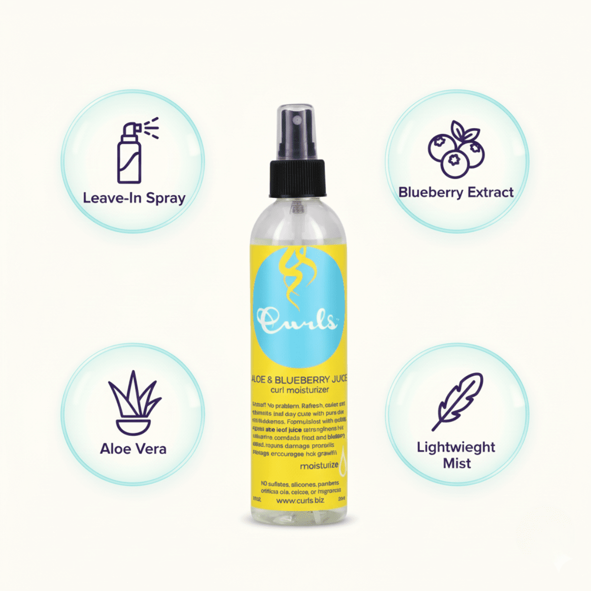 Gib deinen Locken sofortige Frische, intensive Feuchtigkeit und natürlichen Glanz – ganz ohne Waschen! Der Curls Aloe Blueberry Juice Curl Moisturizer ist ein ultraleichtes, wirkungsstarkes Pflegespray, das trockene, leblose Locken in Sekunden reaktiviert, glättet und definiert.