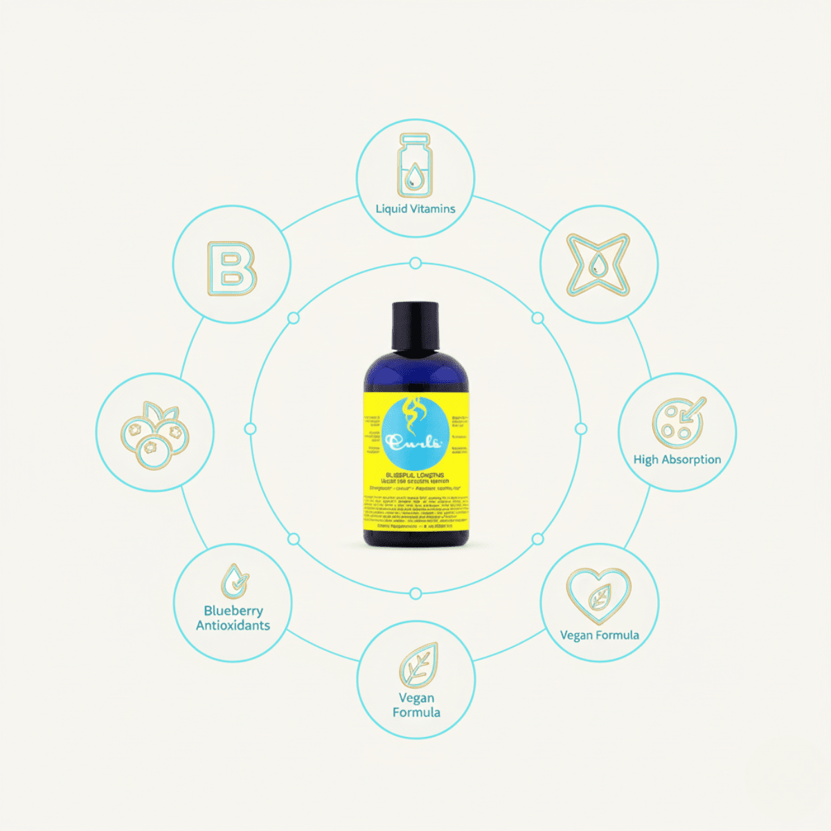 Wenn du dir sichtbar längeres, kräftigeres und volleres Haar wünschst, ist dieses Vitamin-Elixier deine neue Geheimwaffe. Das Curls Blissful Lengths Blueberry Liquid Hair Growth Vitamin liefert hochdosierte, flüssige Nährstoffe, die der Körper bis zu 98 % schneller und effizienter aufnehmen kann – im Vergleich zu nur ca. 20 % bei herkömmlichen Tabletten.