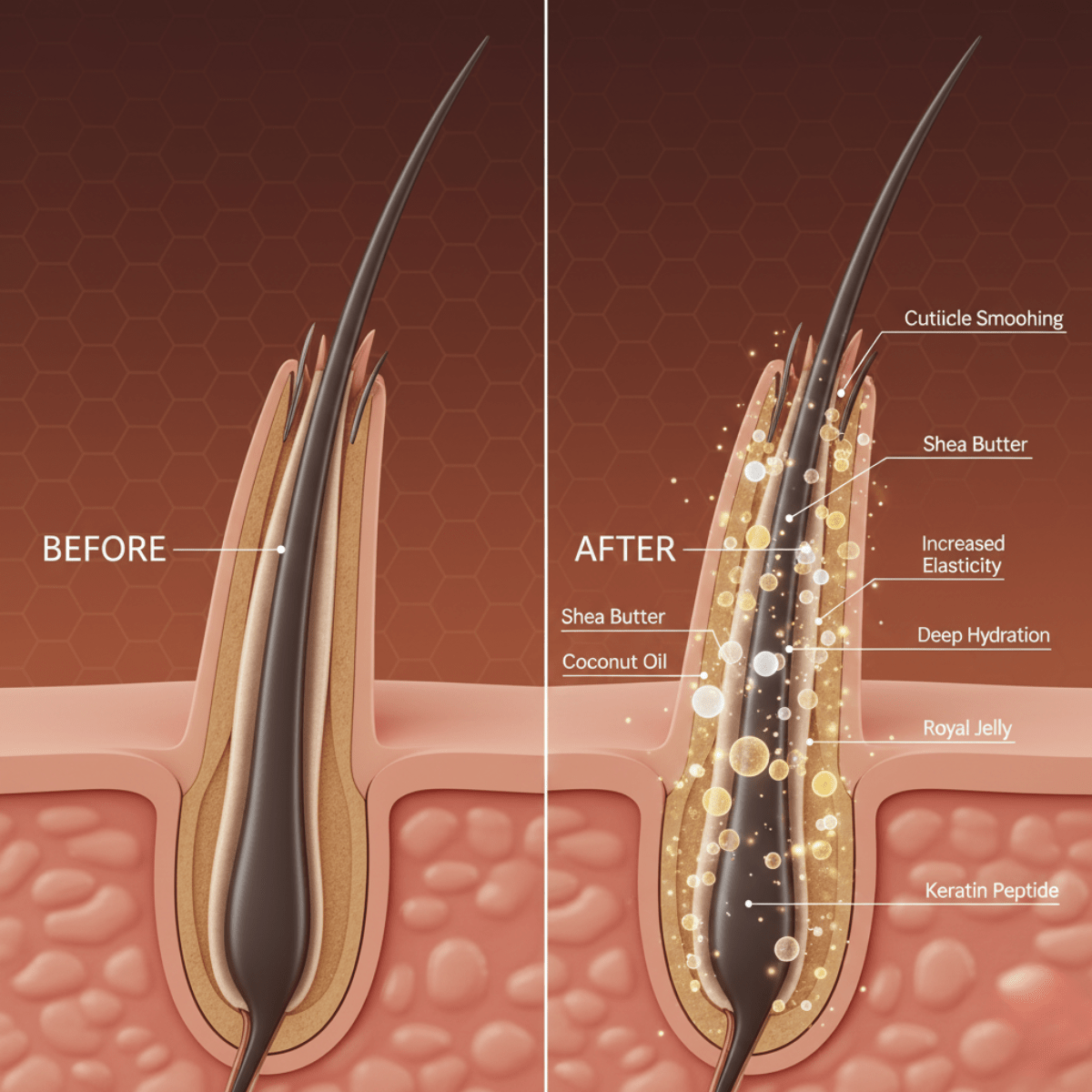 ☑️ Verbessert die Elastizität und Geschmeidigkeit der Haarfasern.