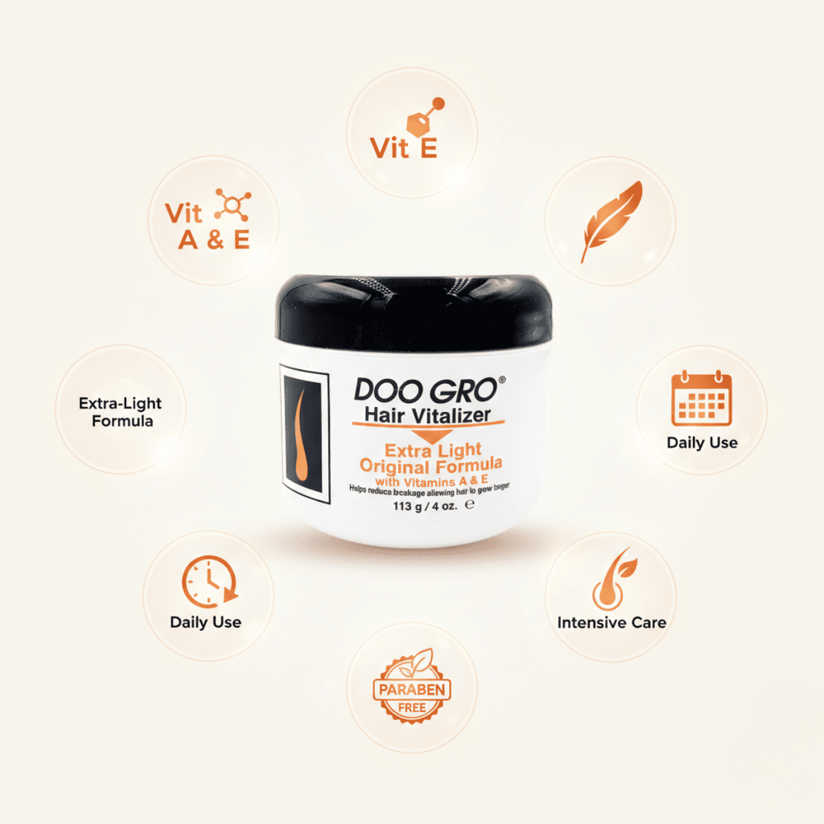 Der Doo Gro Extra Light Original Formula Vitalizer 113g liefert genau das: eine extraleichte, reichhaltige Formel, die das Haar kräftigt, revitalisiert und ihm einen gesunden, natürlichen Glanz verleiht – ideal für den täglichen Gebrauch.