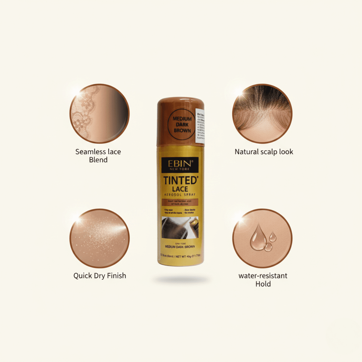 Ein natürlicher Lace-Look ist der Schlüssel zu einer perfekten, professionellen Perücke – und dieses Spray macht ihn mühelos möglich. Das Ebin New York Tinted Lace Aerosol Spray Dark Brown sorgt für eine realistische, nahtlose Farbanpassung, die Ihre Lace-Front mit Ihrem Hautton verschmelzen lässt. Schnell, präzise und unglaublich effektiv, selbst für Anfänger.