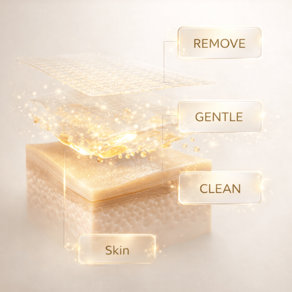 3️⃣ Gelöste Kleberreste sanft abwischen.