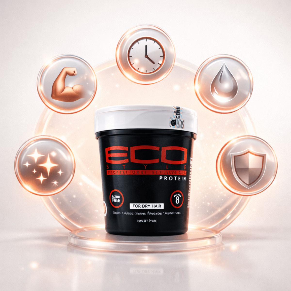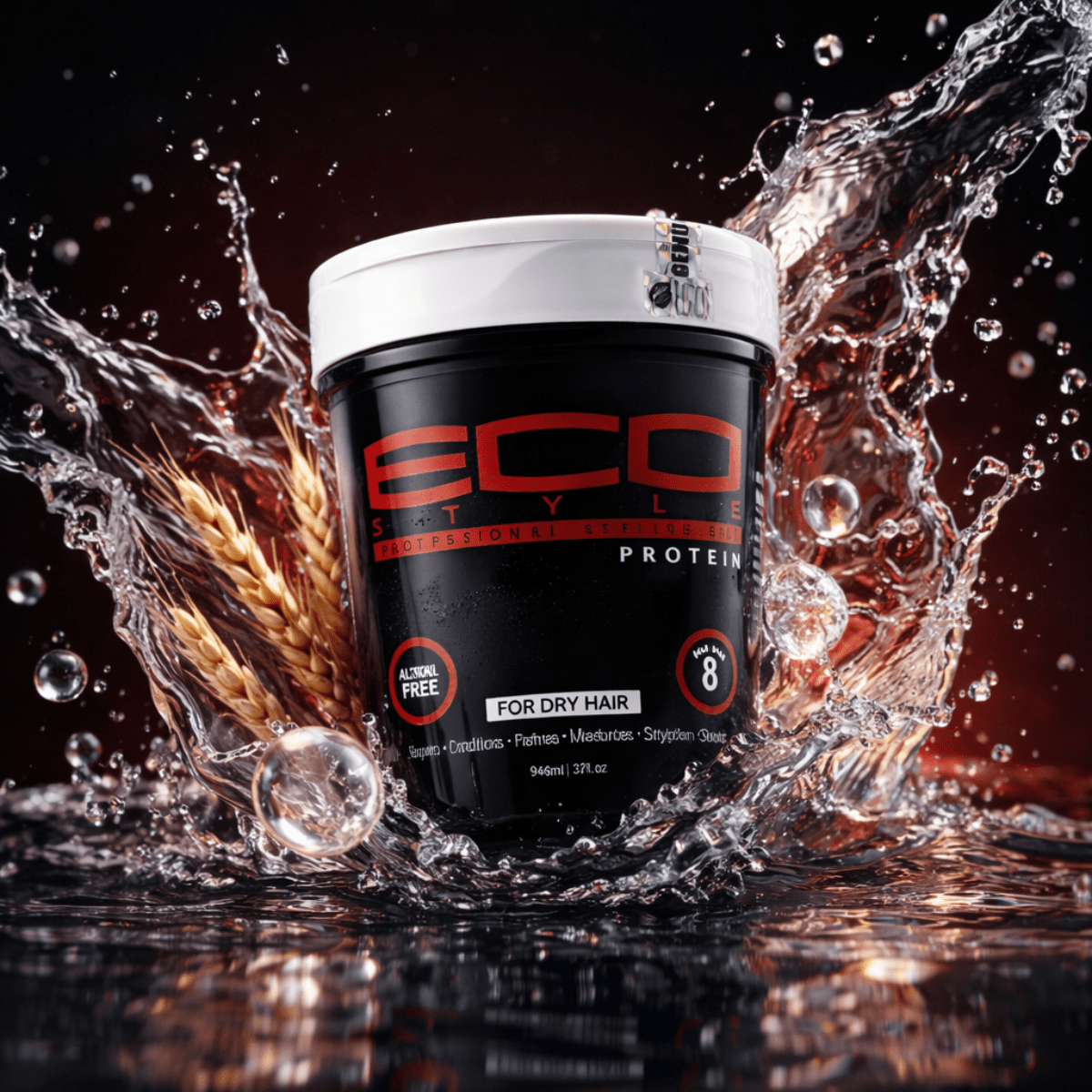 Eco Styler Protein Professional Styling Gel 946ml – starkes, schwereloses Stylinggel mit Weizenprotein. Für intensiven Halt, Glanz und gepflegtes, kräftiger aussehendes Haar. Ideal für alle Haartypen.