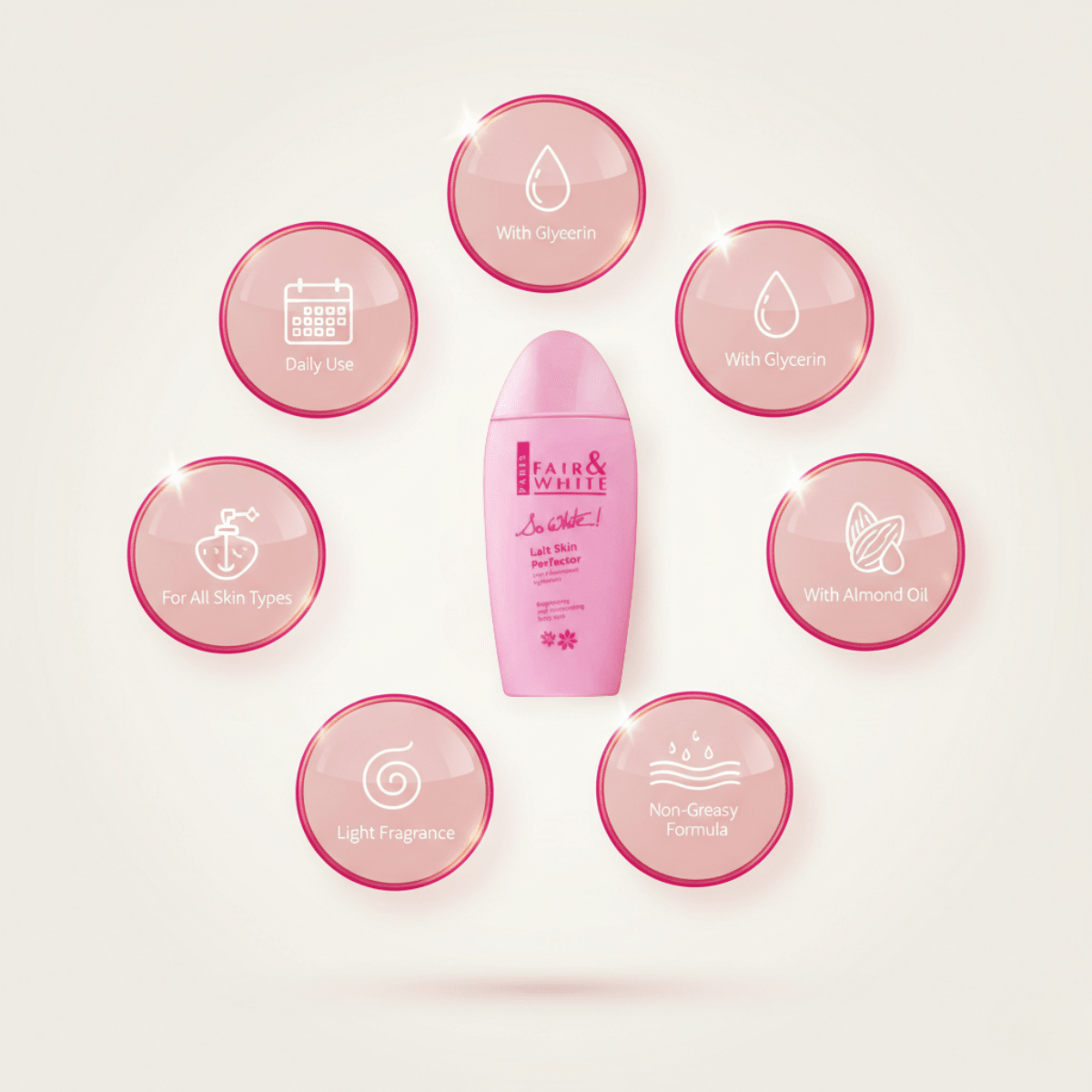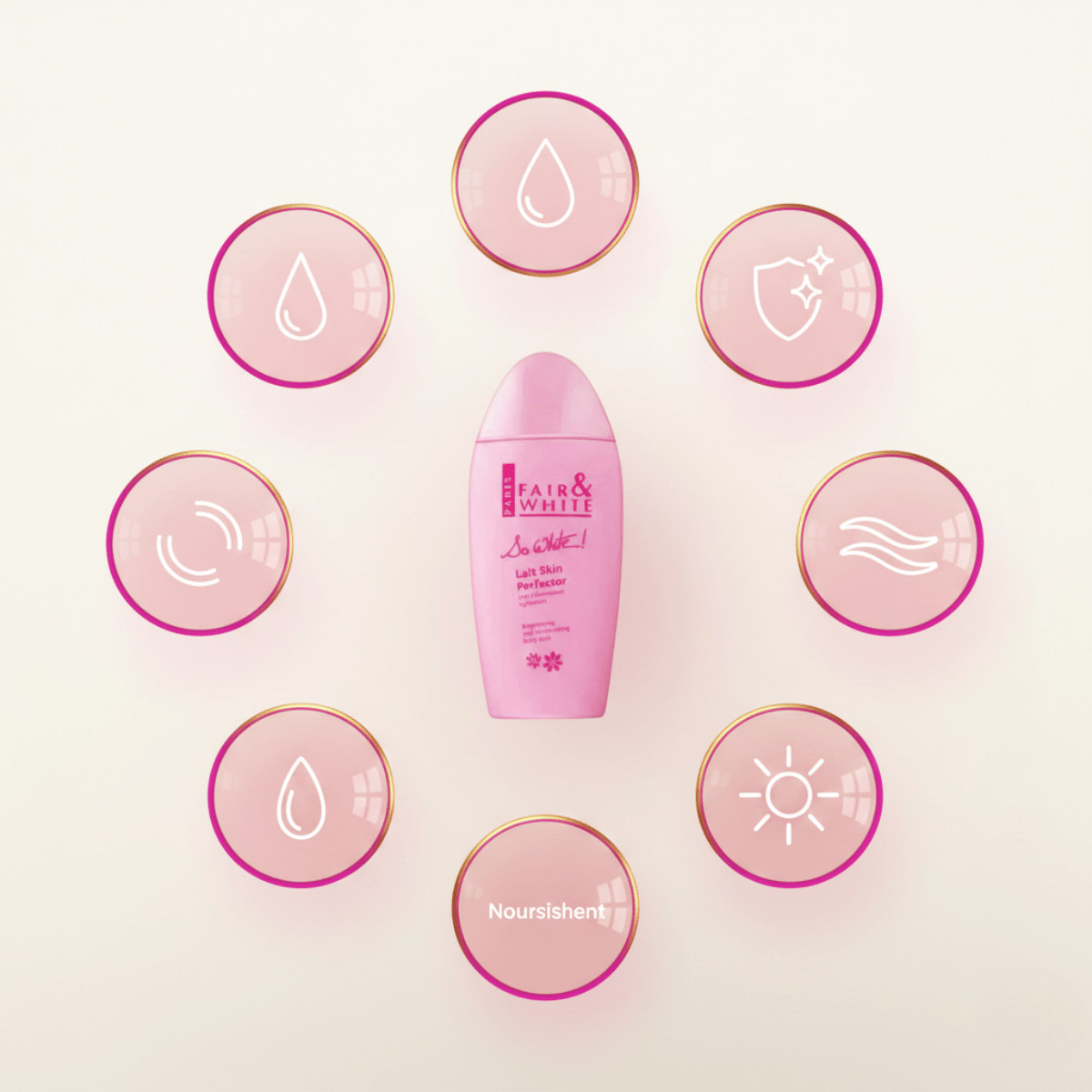 Die Fair & White So White Lait Hydra Sweet Moisturizing Body Care Milk vereint feuchtigkeitsspendendes Glycerin und pflegendes Mandelöl in einer reichhaltigen, zugleich nicht fettenden Formel. Selbst sehr trockene Haut wird spürbar beruhigt, weich und glatt. Bei regelmäßiger Anwendung verbessert die Body Milk sichtbar den Hautton und verleiht der Haut eine neue, jugendliche Leuchtkraft.