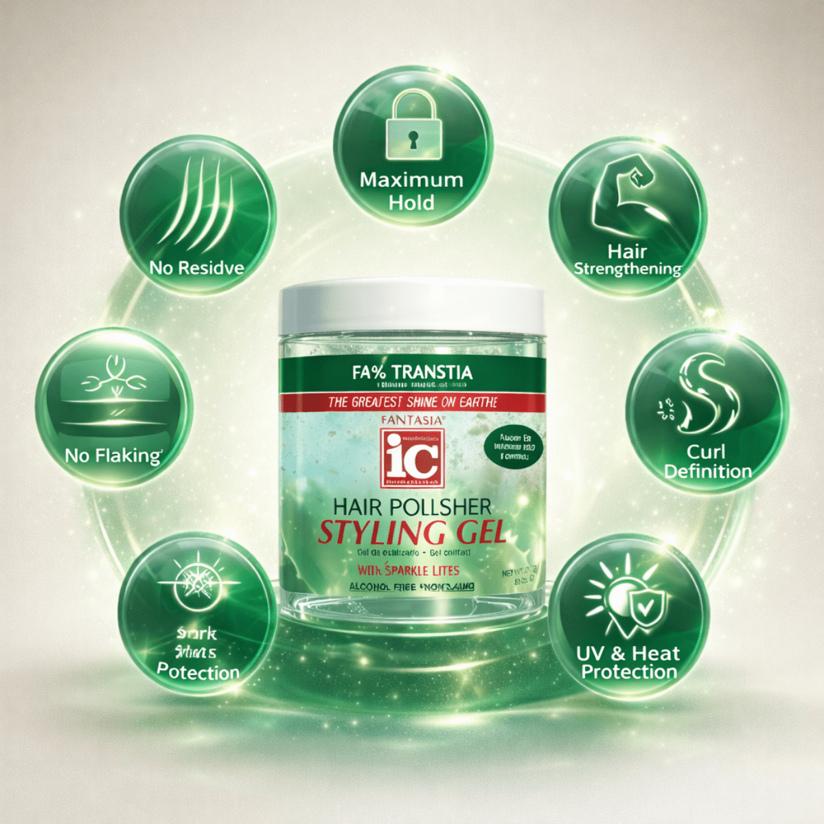 Wenn du ein Styling-Gel suchst, das maximalen Halt, natürlichen Glanz und pflegeintensive Inhaltsstoffe vereint, ist dieses Gel die perfekte Wahl. Das Fantasia IC Hair Polisher Maximum Hold Styling Gel sorgt für ultimative Kontrolle, ohne das Haar zu beschweren oder zu verkleben – ideal für Blow-Drying, Roller-Sets, Slick-Styles, Lockendefinition und kreative Looks, die den ganzen Tag halten sollen.