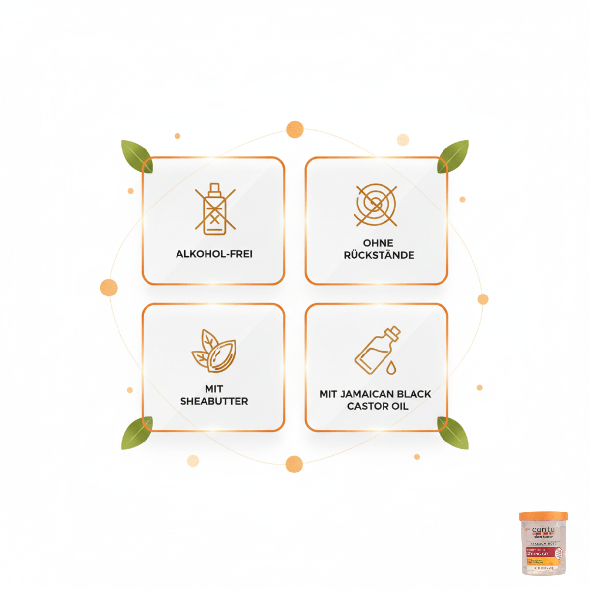 Cantu Jamaican Black Castor Oil Gel – starker Halt, Definition & Feuchtigkeit ohne Austrocknen. Perfekt für Locken, Twists & natürliche Stylings.