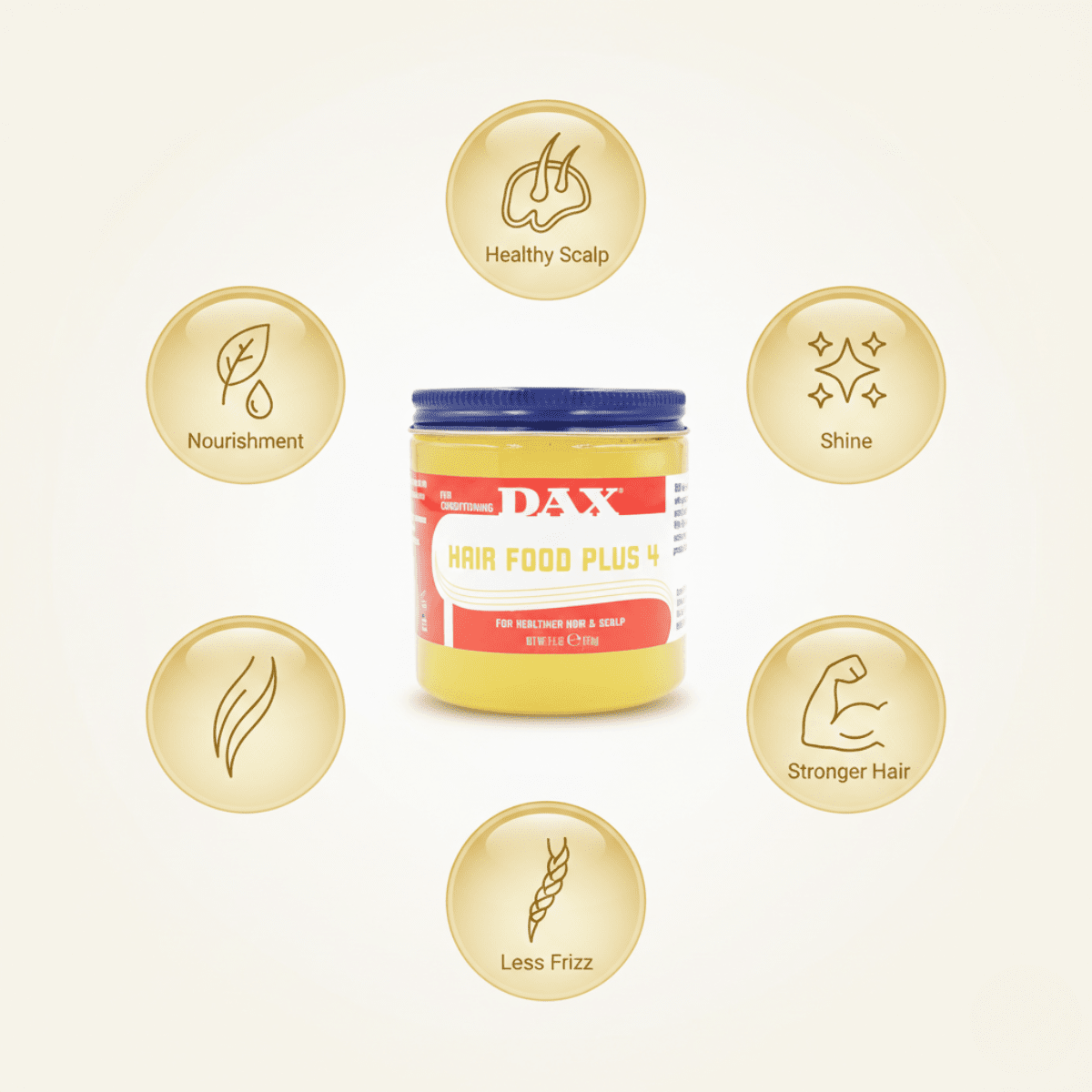 Geben Sie Ihrem Haar genau das, was ihm am meisten fehlt: intensive Nährstoffe, tiefe Feuchtigkeit und nachhaltige Stärkung. Dax Hair Food Plus 4 213g ist eine reichhaltige Pflegeformel, die Ihr Haar von der Wurzel bis in die Spitzen revitalisiert und gleichzeitig die Kopfhaut beruhigt und nährt. Für sichtbar gesünderes, kräftigeres und geschmeidigeres Haar – jeden Tag.