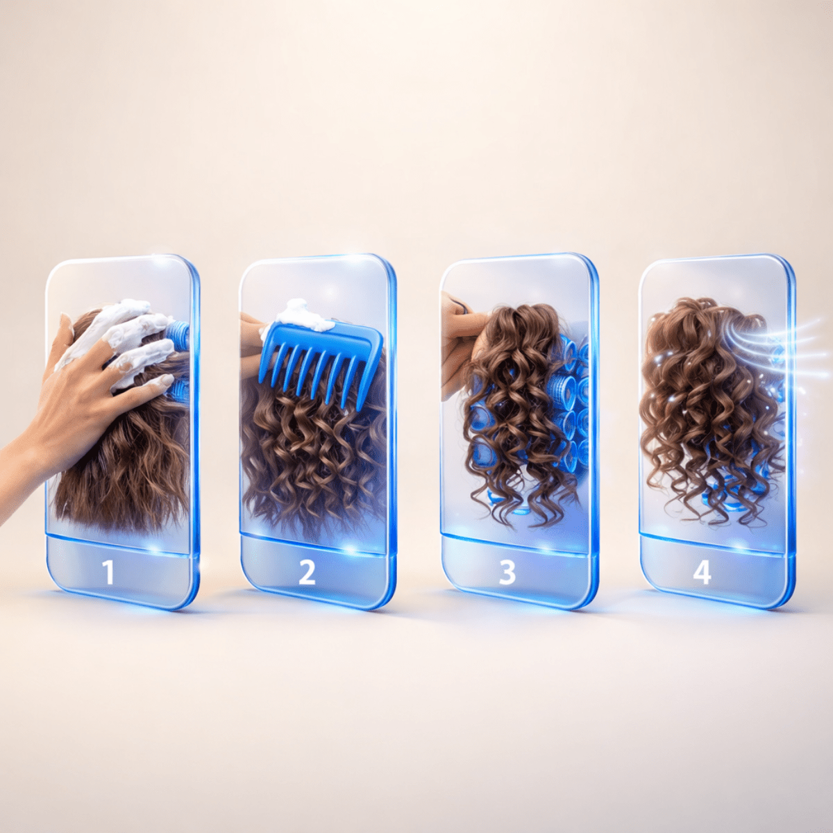 2️⃣ Für Locken Mit den Fingern oder einem Kamm gleichmäßig verteilen und Locken definieren.