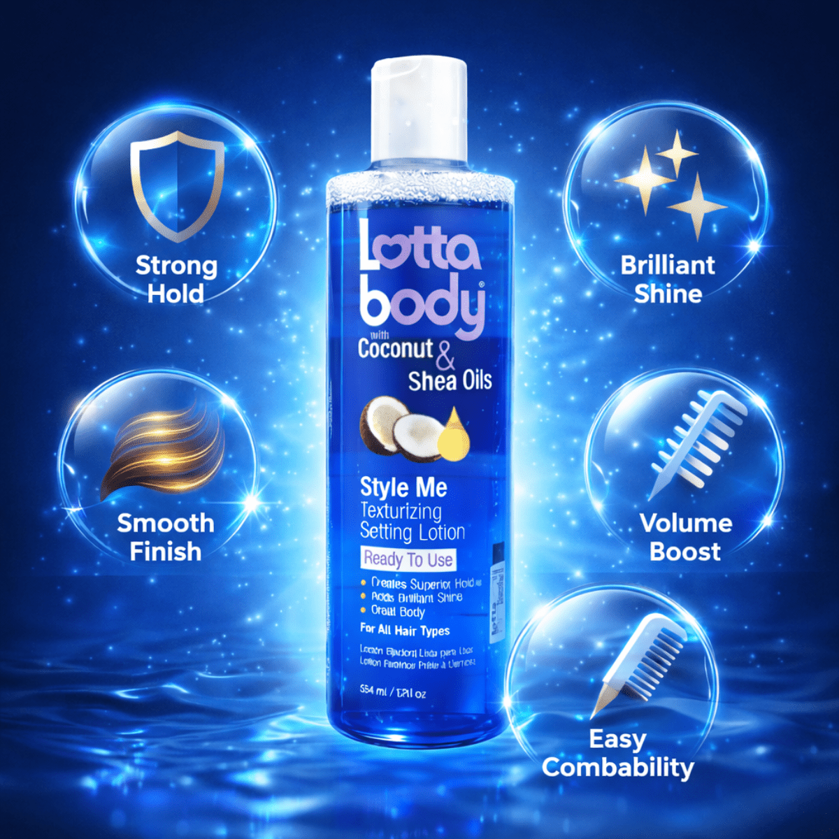Sie möchten definierte Locken, ein perfekt sitzendes Set oder ein geschmeidiges Blowout, das den ganzen Tag hält? Die Lotta Body Style Me Texturizing Setting Lotion mit Kokosnuss- und Sheaöl wurde entwickelt, um Ihrem Haar maximale Kontrolle, intensiven Glanz und langanhaltenden Halt zu schenken – ohne zu verkleben oder zu beschweren.