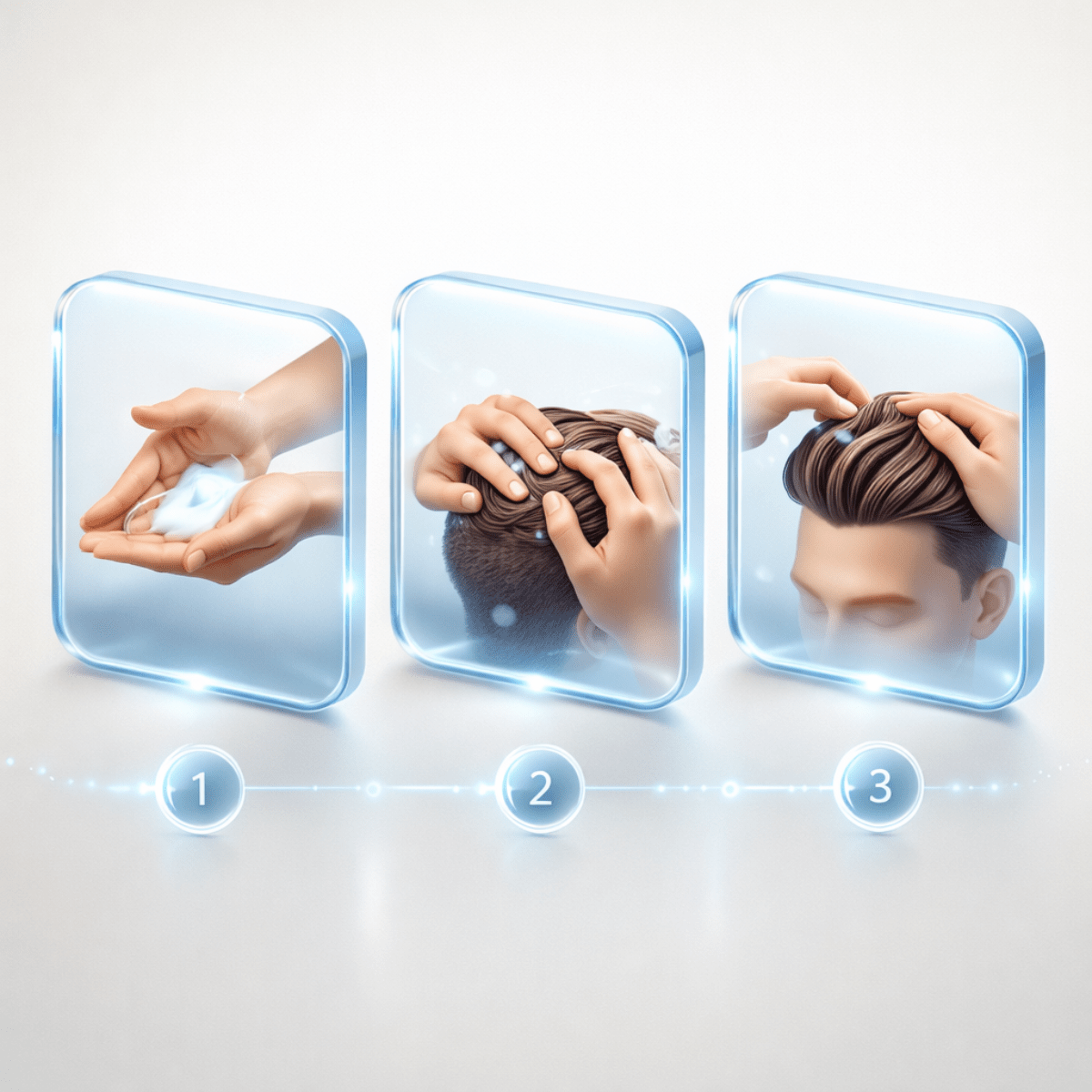 2️⃣ Gleichmäßig im trockenen oder handtuchtrockenen Haar verteilen.