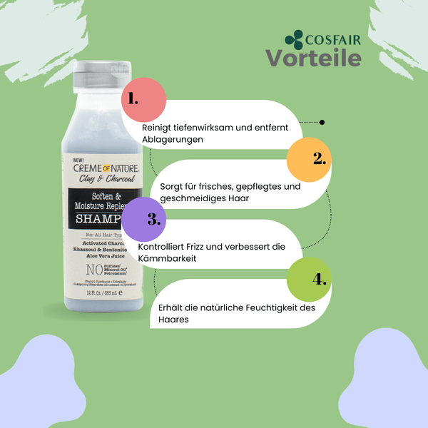 Das Clay & Charcoal Shampoo reinigt nicht nur porentief, sondern hilft auch, Frizz zu kontrollieren, die Haarstruktur zu glätten und die Kämmbarkeit zu verbessern.