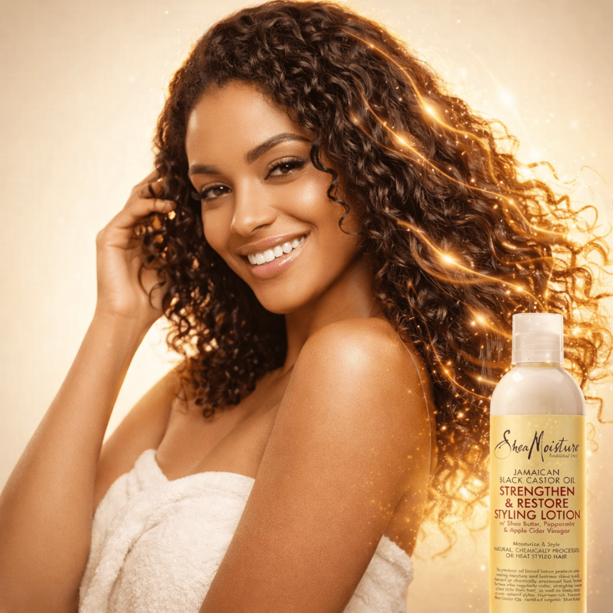Erleben Sie eine intensiv nährende, stärkende und glanzverleihende Haarpflege, die selbst stark geschädigtes, trockenes oder chemisch behandeltes Haar wieder in Bestform bringt. Mit einer kraftvollen Mischung aus jamaikanischem schwarzem Rizinusöl, Bio-Sheabutter und belebender Pfefferminze sorgt diese reichhaltige Styling-Lotion für sichtbar stärkeres, gesünderes und bruchfestes Haar – jeden Tag.