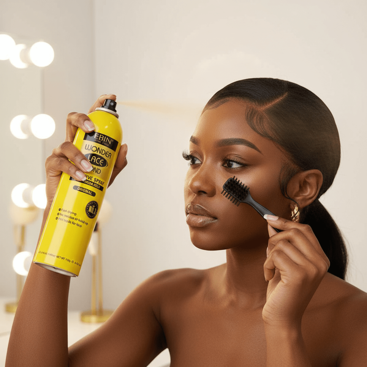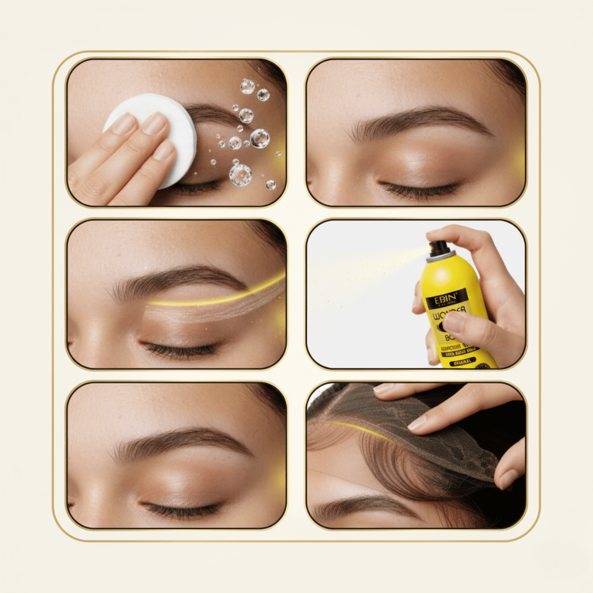 Ebin Wonder Lace Bond Extra Mega Hold Spray – extrem starker, klar trocknender Halt für Lace-Fronts. Schweißresistent, vegan, präzise Anwendung & nahtloser natürlicher Haaransatz.