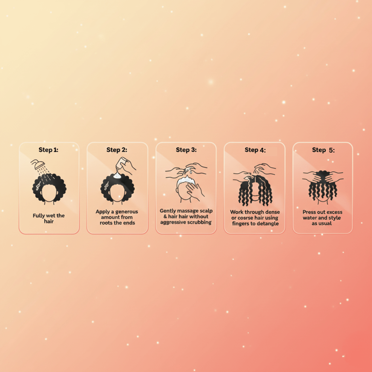 2️⃣ Eine moderate Menge Co-Wash vom Ansatz bis in die Spitzen einarbeiten.