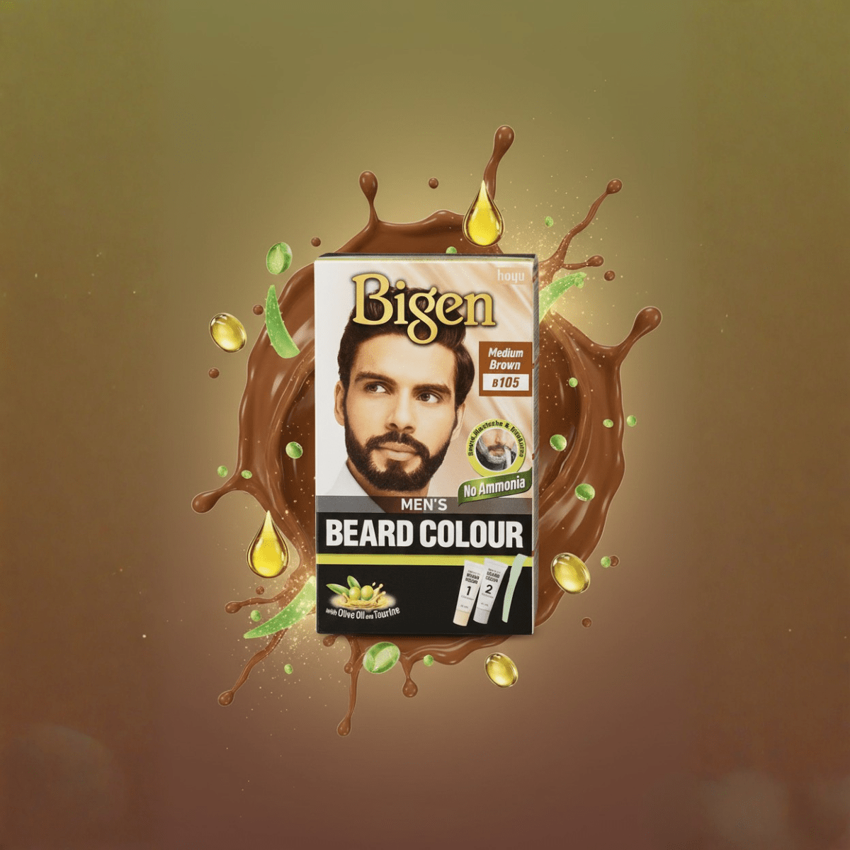 Bigen Men's Beard Colour B105 Medium Brown perfectly covers grey and does not stain the skin. The fast-touch comb makes it easy to apply to any part of the beard or mustache, even on short styles. The colour does not drip and effortlessly reaches every area of the beard, even on shorter styles. Bigen Men's Beard Colour B105 Medium Brown contains olive oil, aloe extract, pullulan and taurine, but no ammonia.
