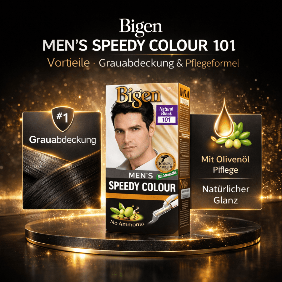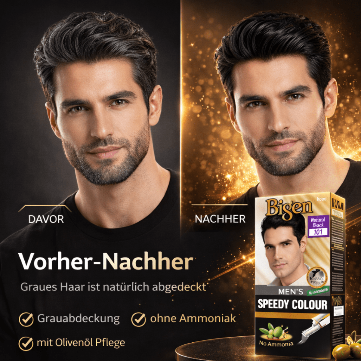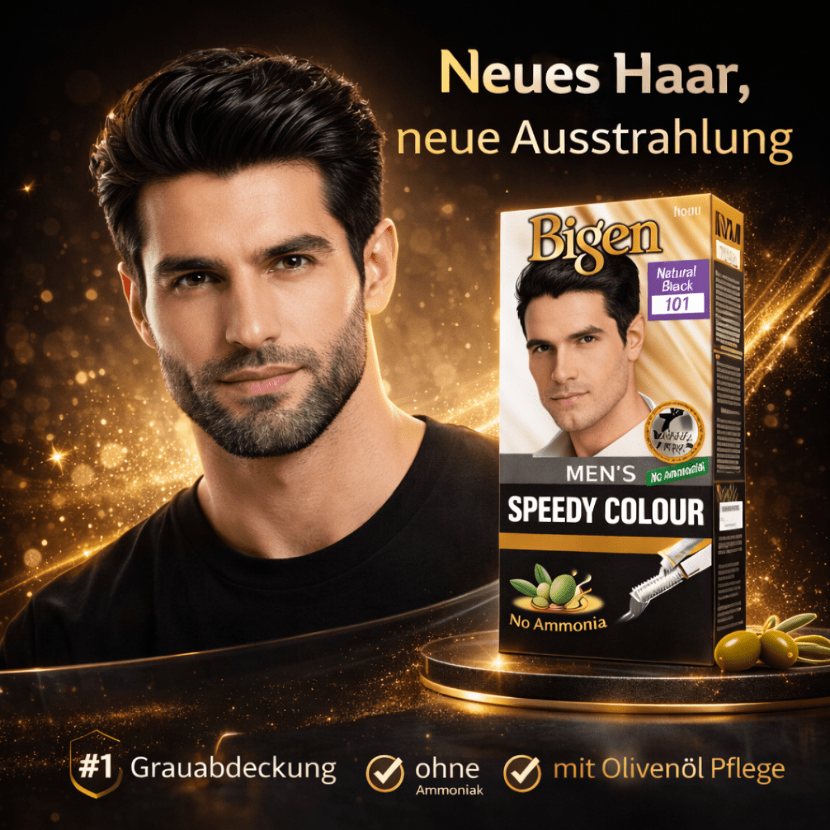 Graue Haare müssen nicht sein. Mit Bigen Men’s Speedy Farbe 101 – Natural Black erhalten Sie eine intensive, natürliche Schwarz-Nuance, die Ihr Haar wieder kraftvoll, gepflegt und jugendlich wirken lässt. Entwickelt speziell für Männer, die schnelle Ergebnisse, einfache Anwendung und zuverlässige Grauabdeckung erwarten.