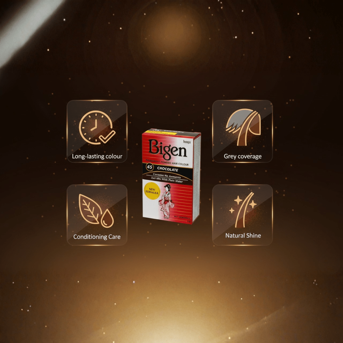 Dank der ammoniakfreien, wasseraktivierten Pulverformel genießt Ihr Haar eine schonende, aber äußerst effektive Farbveränderung – ganz ohne starken Geruch oder aggressive Chemikalien. Das Ergebnis ist glänzendes, geschmeidiges und gesund aussehendes Haar in einem traumhaften Schokoladenbraun.
