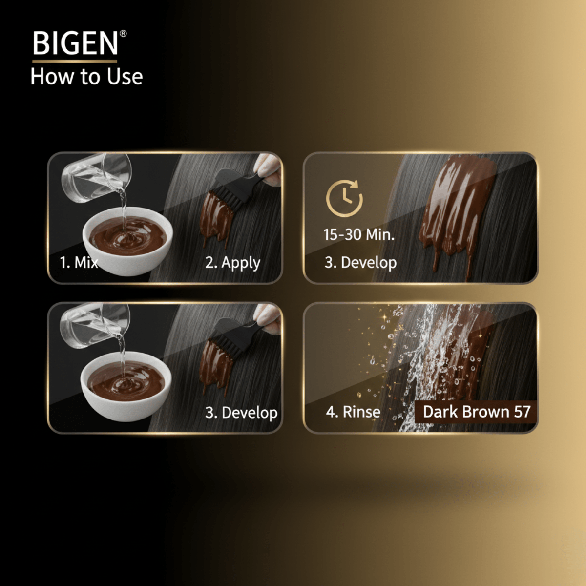 Verleihen Sie Ihrem Haar eine kraftvolle, natürliche und langanhaltende Dunkelbraun-Nuance, die Ihre Ausstrahlung sofort veredelt. Mit Bigen Permanent Powder Hair Colour 57 – Dark Brown erhalten Sie eine Farbe, die tiefe Brillanz, gleichmäßige Deckkraft und maximale Schonung perfekt miteinander verbindet.
