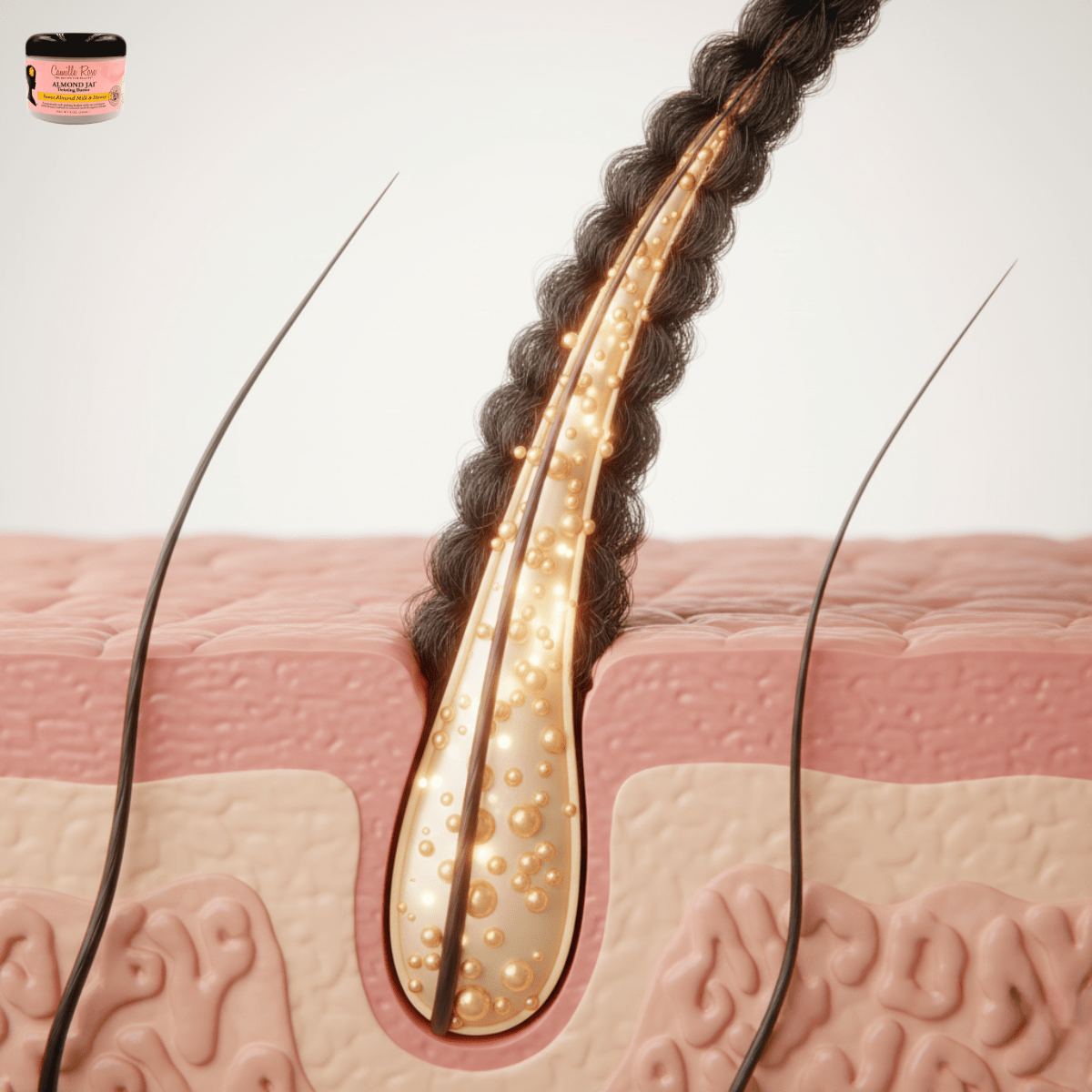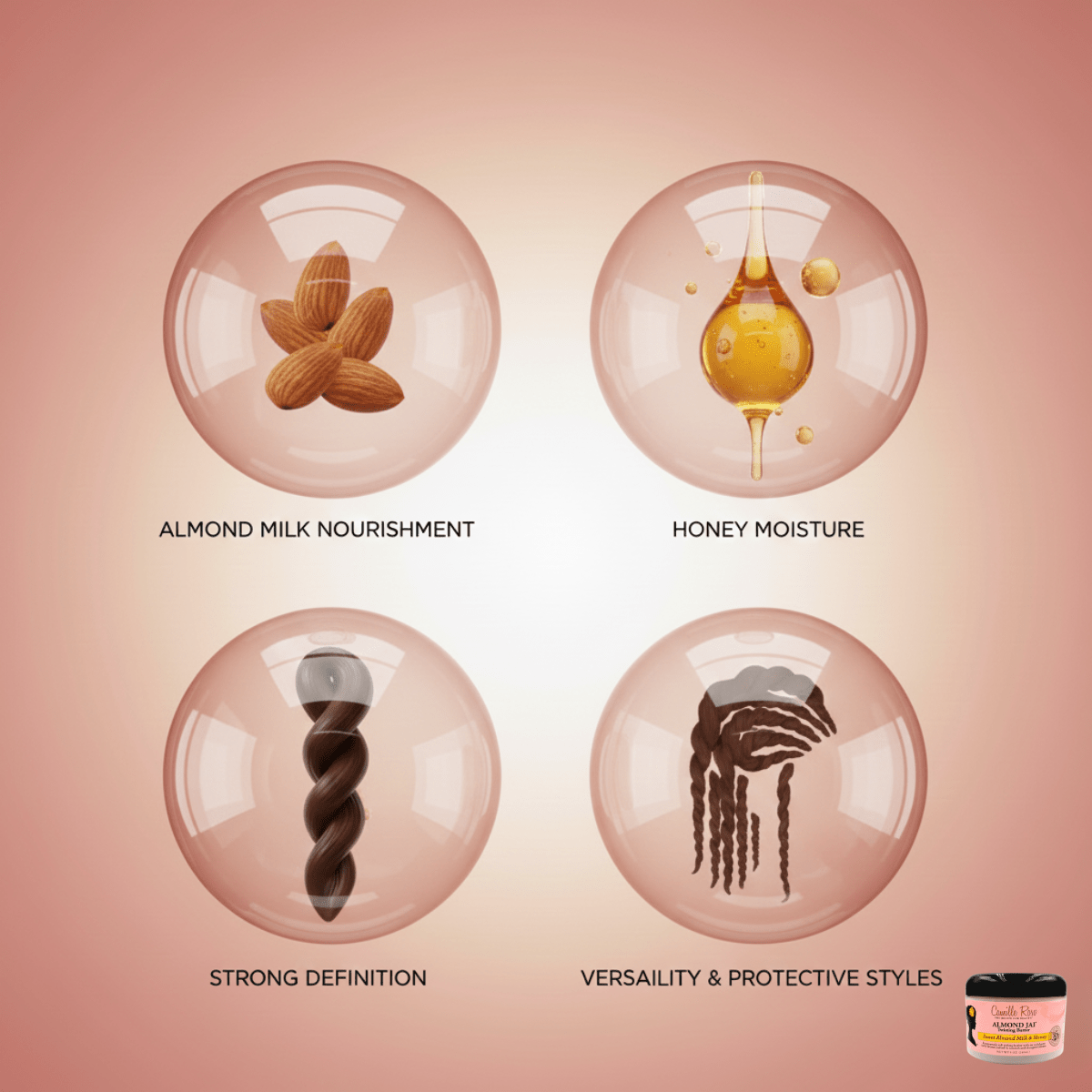 Hydrate. Soften. Strengthen. Camille Almond Jai Twisting Butter is a must-have that will soften, strengthen and lengthen your twists while maintaining your style! Butter your curls with this supremely soft styling cream with smoothing almond milk and sweet honey droplets. Lightweight and moisturizing, this Camille Almond Jai Twisting Butter is good for all ages.