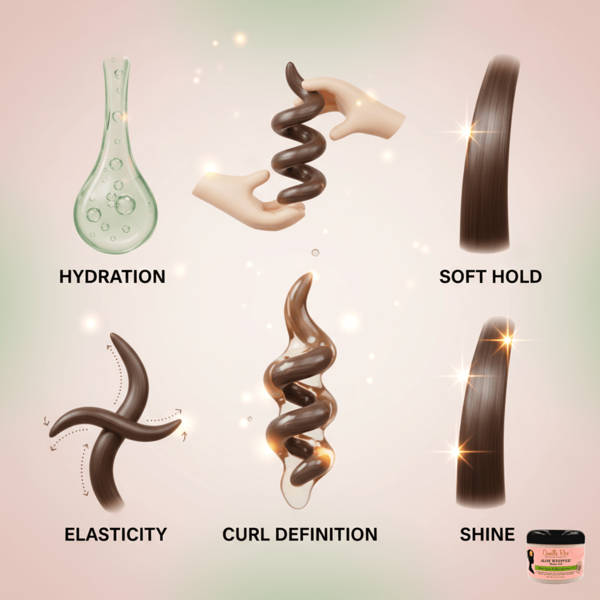 Camille Rose Aloe Whipped Butter Gel – weiche Definition, tiefe Feuchtigkeit & natürlicher Glanz mit Aloe Vera und Pflanzenölen. Ideal für Locken & Wellen.