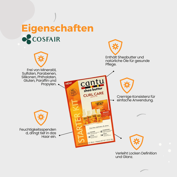 The Cantu Shea Butter Curl Care Starter KIT gives your hair a moisture boost, makes it more elastic and protects against hair breakage. It offers frizz-free definition and shine, increases combability and moisturizes natural hair.