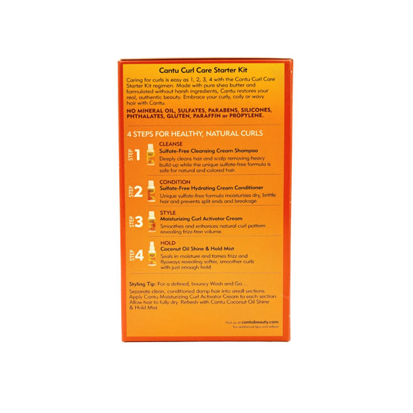 The kit is highly moisturizing, penetrates deeply to strengthen and restore dry hair. Made with pure ingredients for improved manageability and shine. Easily care for your curls with the Cantu Shea Butter Curl Care Starter KIT - as easy as 1, 2, 3, 4. Treat your curly or wavy hair.