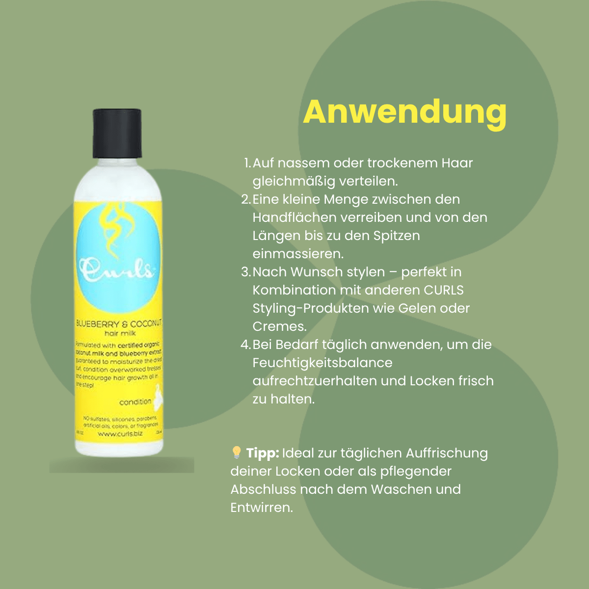 4️⃣ Nach Wunsch stylen – ideal in Kombination mit anderen CURLS-Produkten.