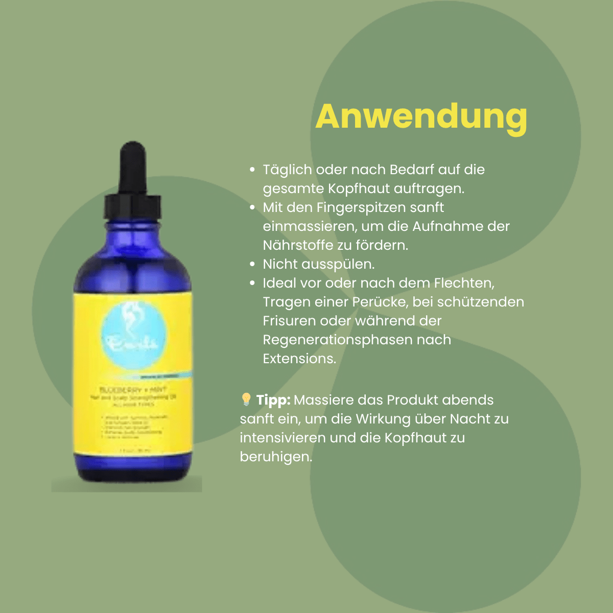 Perfekt – es beruhigt die Kopfhaut und verhindert Trockenheit unter schützenden Frisuren.