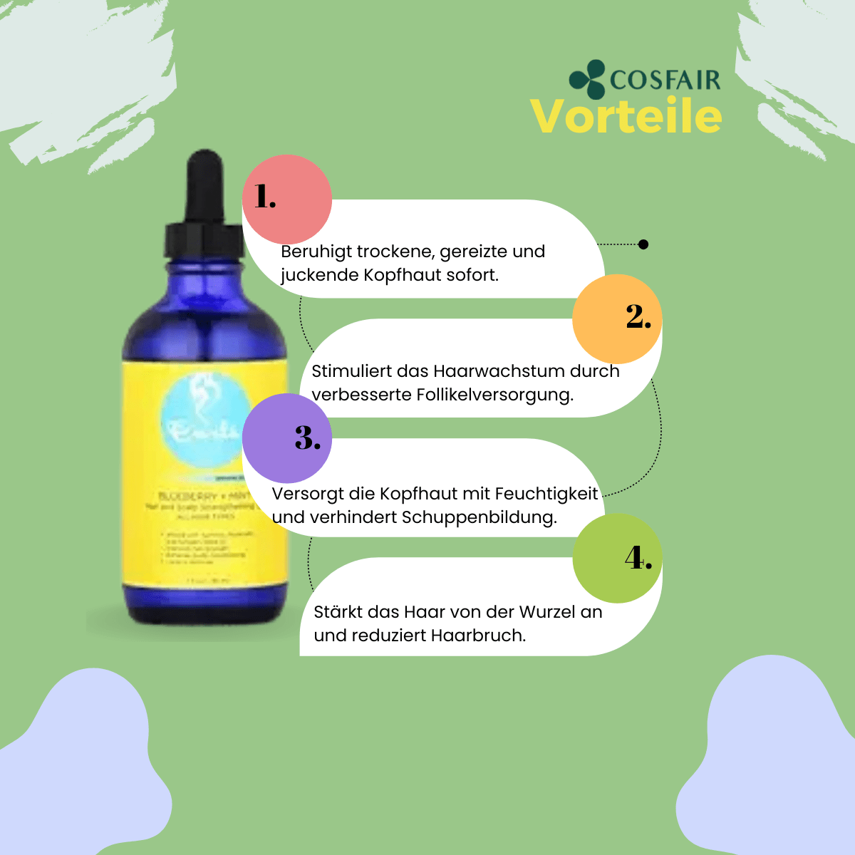 Beruhigt juckende Kopfhaut, fördert Haarwachstum und spendet Frische. Blueberry & Mint Scalp Treatment – leichte, kühlende Pflege für gesundes Haar.