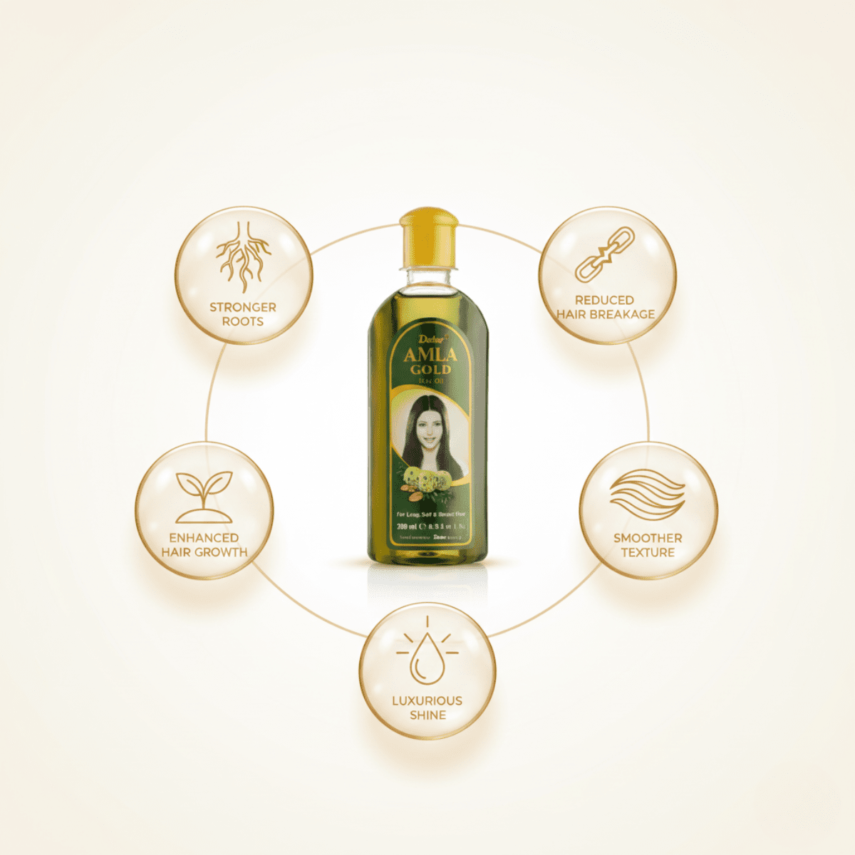 Enriched with natural Amla, Dabur Amla Gold Hair Oil strengthens your hair from within and adds beauty on the outside to keep you looking radiant all day long. As the world's largest hair oil brand with over 35 million consumers, Dabur Amla Hair Oil has become a symbol of beauty for Indian women. For over 80 years, it has been the secret to stronger, longer and thicker hair, both in India and across the globe.