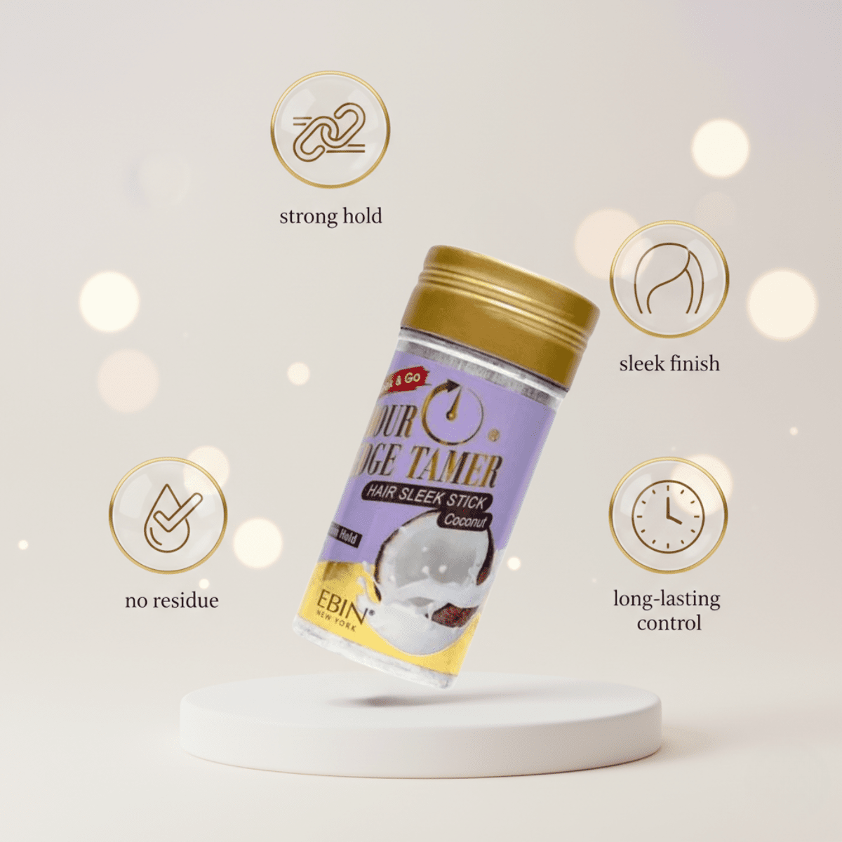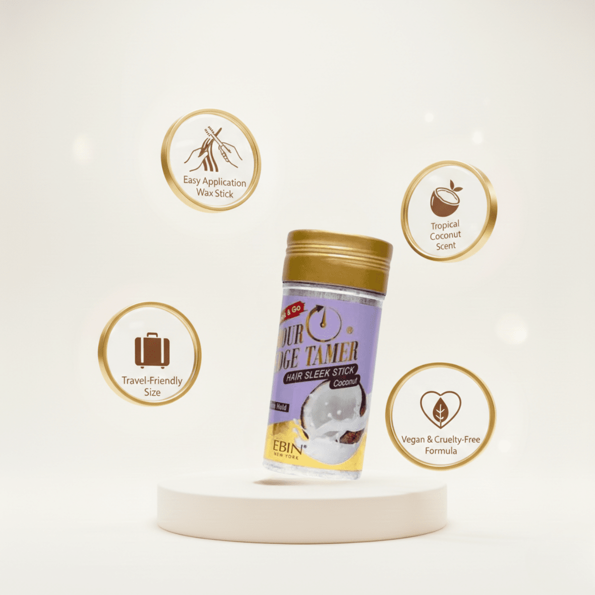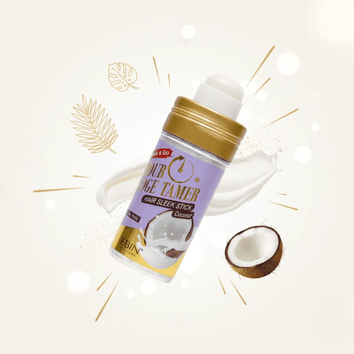Ebin New York 24 Hour Edge Tamer Wax Stick – Coconut. Extrem starker Halt, rückstandsfrei & ideal für Edges und abstehende Haare. Tropischer Kokosduft, vegan & für alle Haartypen geeignet.