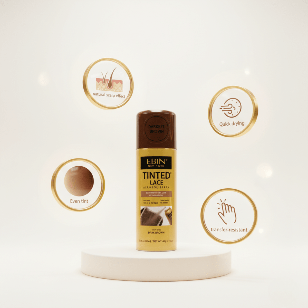 Redesign your lace wig routine with Ebin New York Tinted Lace Aerosol Spray Darkest Brown! Achieve a natural look and save time with this quick-drying aerosol spray. Our waterproof formula ensures your wig will look seamless and natural on a variety of occasions, from the gym to a Caribbean vacation.