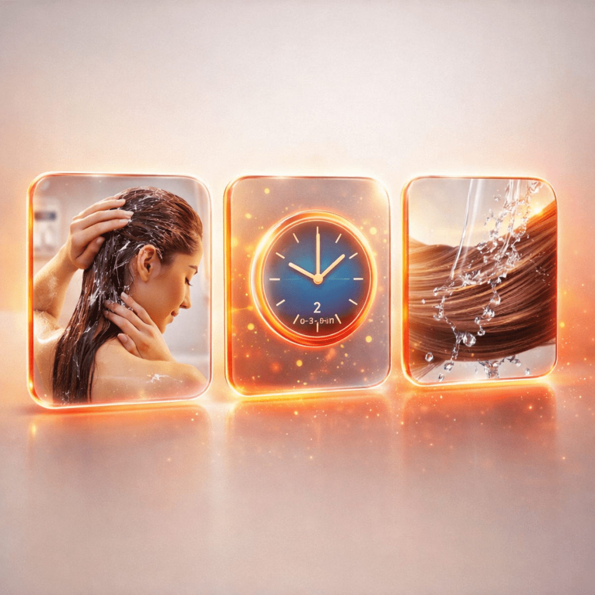 1️⃣ Nach der Haarwäsche in das feuchte Haar einmassieren – besonders in Längen & Spitzen.