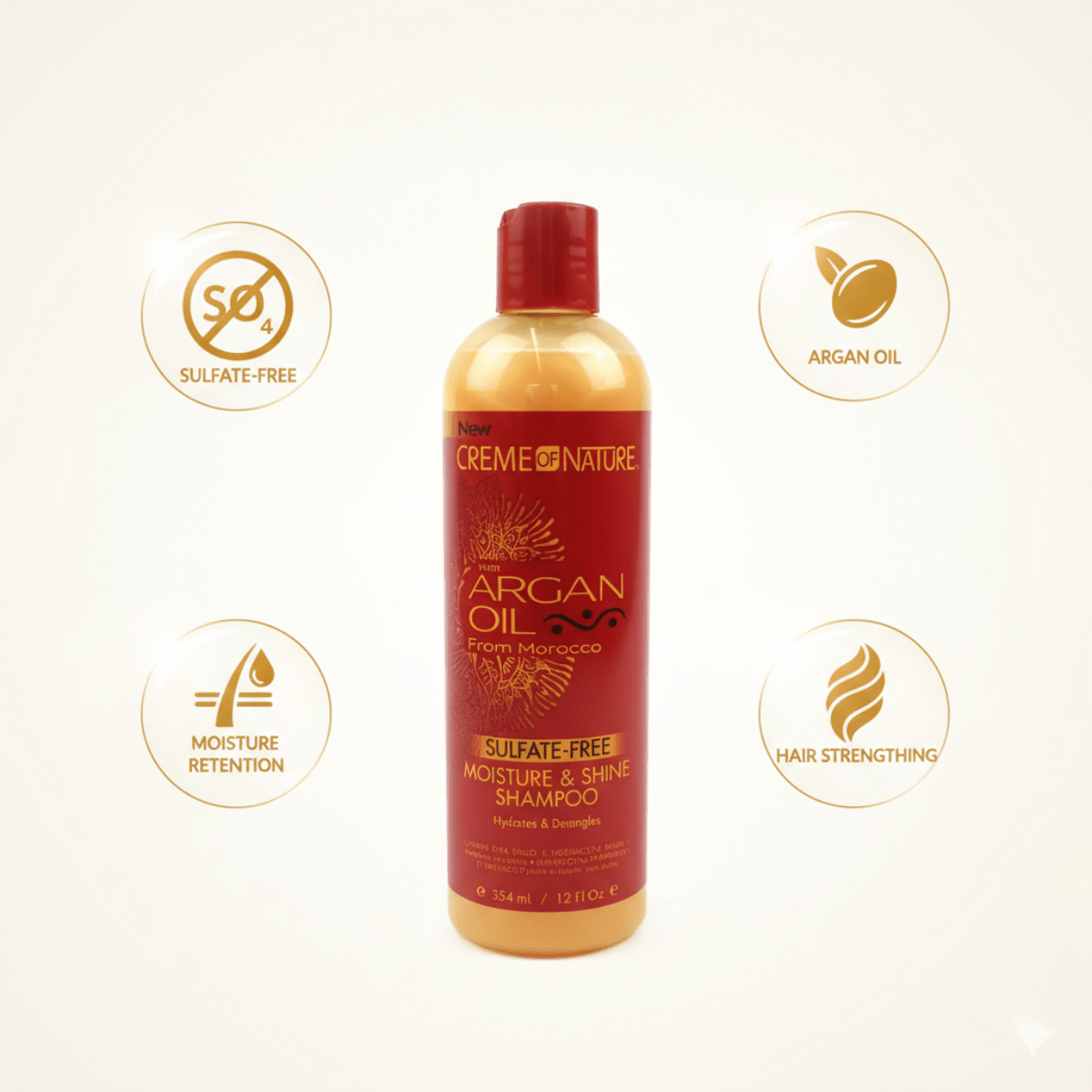 Wenn dein Haar täglich Feuchtigkeit, Pflege und Glanz braucht, ist das Creme of Nature Argan Oil Sulfate Free Moisture & Shine Shampoo in der 591-ml-Größe die ideale Wahl. Die extra große Flasche bietet langanhaltende Pflege für die ganze Familie und ist perfekt für die regelmäßige Anwendung.