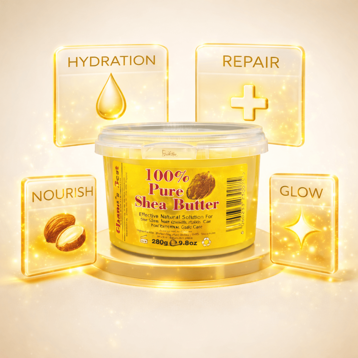 Erleben Sie die unvergleichliche Kraft 100% reiner, gelber Shea Butter, traditionell von erfahrenen Shea-Handwerkerinnen gewonnen und schonend verarbeitet. Diese intensiv pflegende Naturbutter schmilzt bereits bei Hautkontakt zu einer seidig weichen Textur, die trockene Haut beruhigt, krauses Haar bändigt und die Kopfhaut nachhaltig nährt.