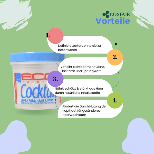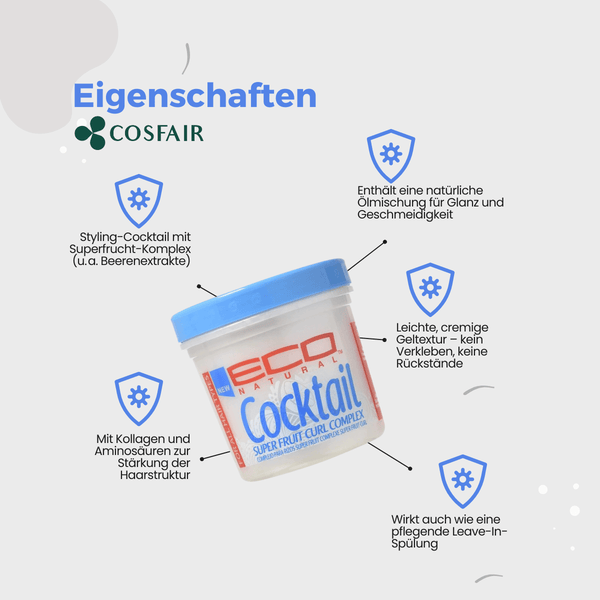Verwandeln Sie Ihre Locken in perfekt definierte, glänzende und federnde Traum-Curls! Der Eco Natural Cocktail Super Fruit Curl Complex 473 ml kombiniert die Kraft nährstoffreicher Superfrüchte mit Kollagen, Aminosäuren und pflegenden Ölen – für sichtbar gesünderes, kräftigeres und lebendigeres Haar.