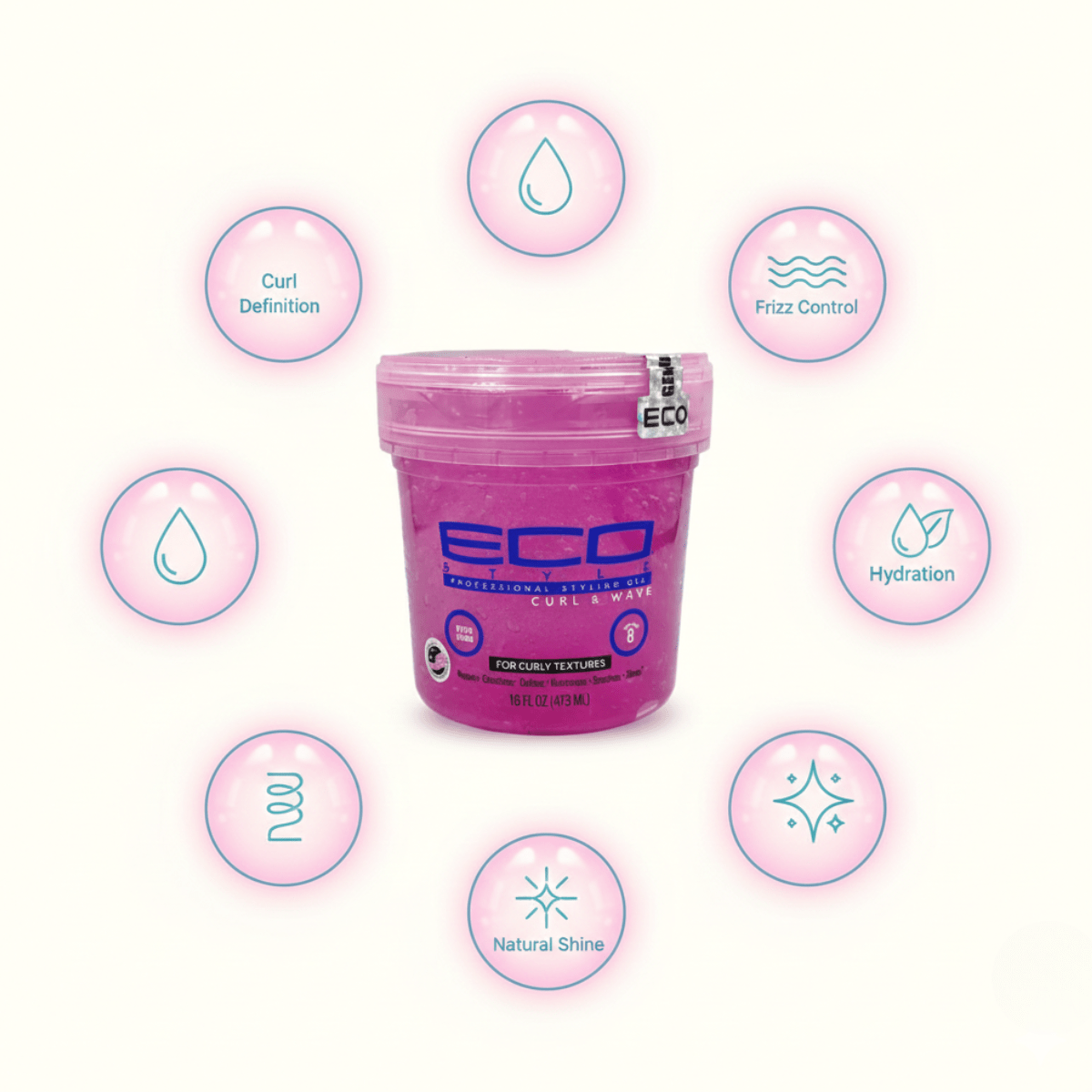Eco Styler Curl Wave Styling Gel 473ml is a firm hold gel ideal for curly and wavy hair and other styles over a longer period of time. Defines and moisturizes curls. Water-based, weightless and with a hold that defies gravity. The Eco Style Firm Hold Gel contains anti-itch additives to minimize scalp irritation. With glycerin for moisture, without flaking and without making hair hard and brittle.