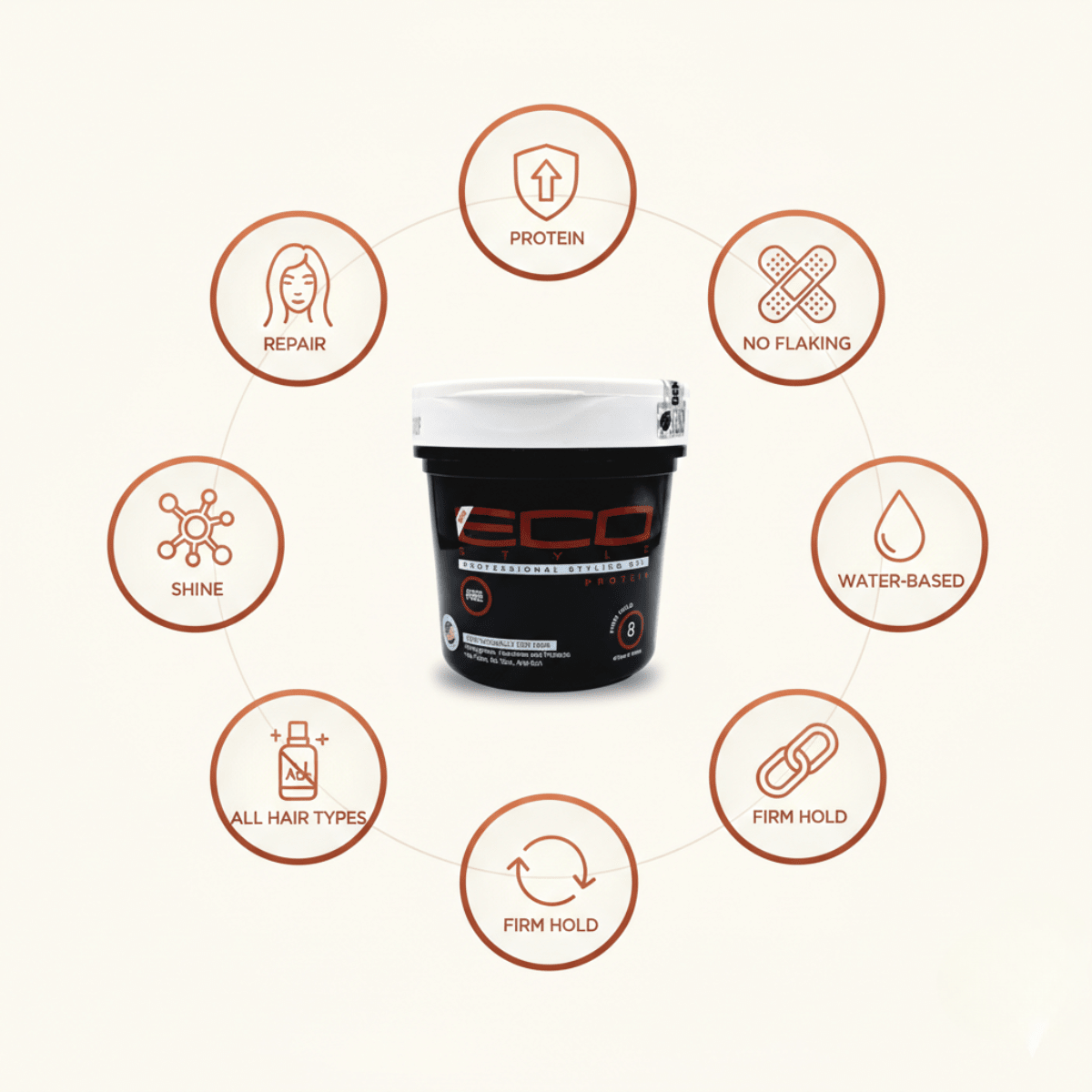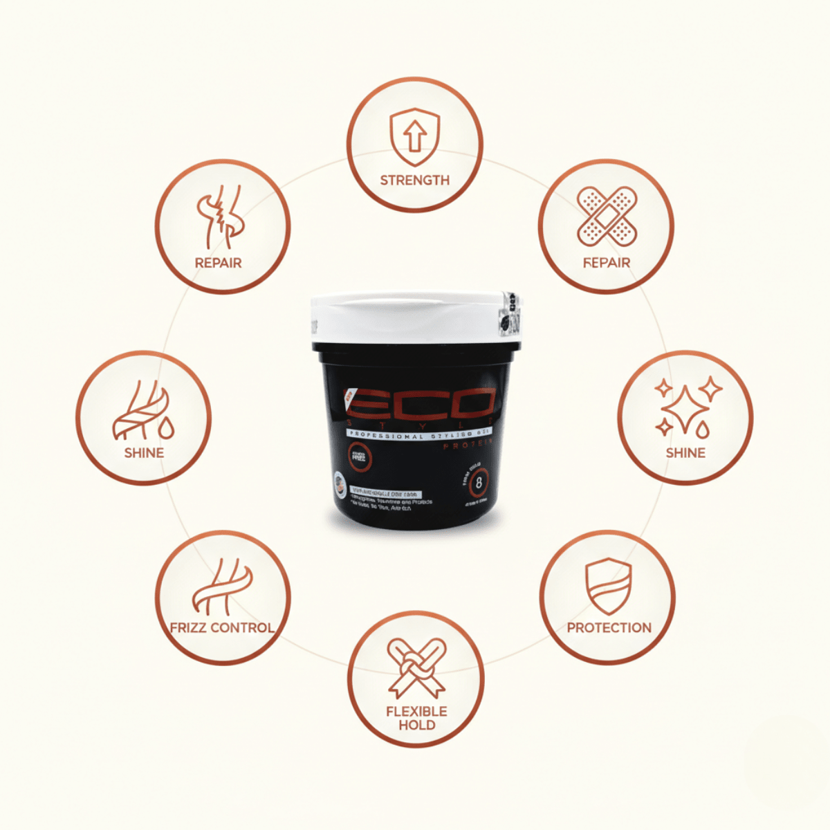 All day hold with Eco Styler Protein Professional Styling Gel 473ml. Enriched with wheat proteins for strength and stylish straightening. This gel not only adds shine but also helps repair, condition and straighten your hair. Comfortable to wear, non-flaking, non-sticky, weightless and with a strong hold.