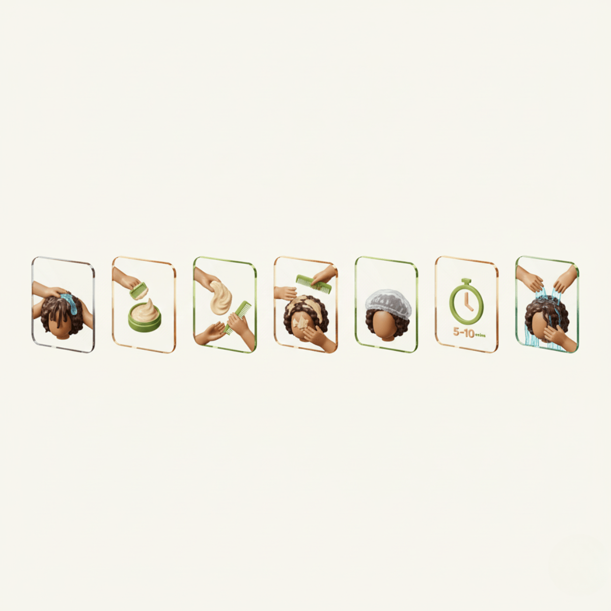 4️⃣ 5–10 Minuten einwirken lassen, für intensivere Pflege unter einer Duschhaube.