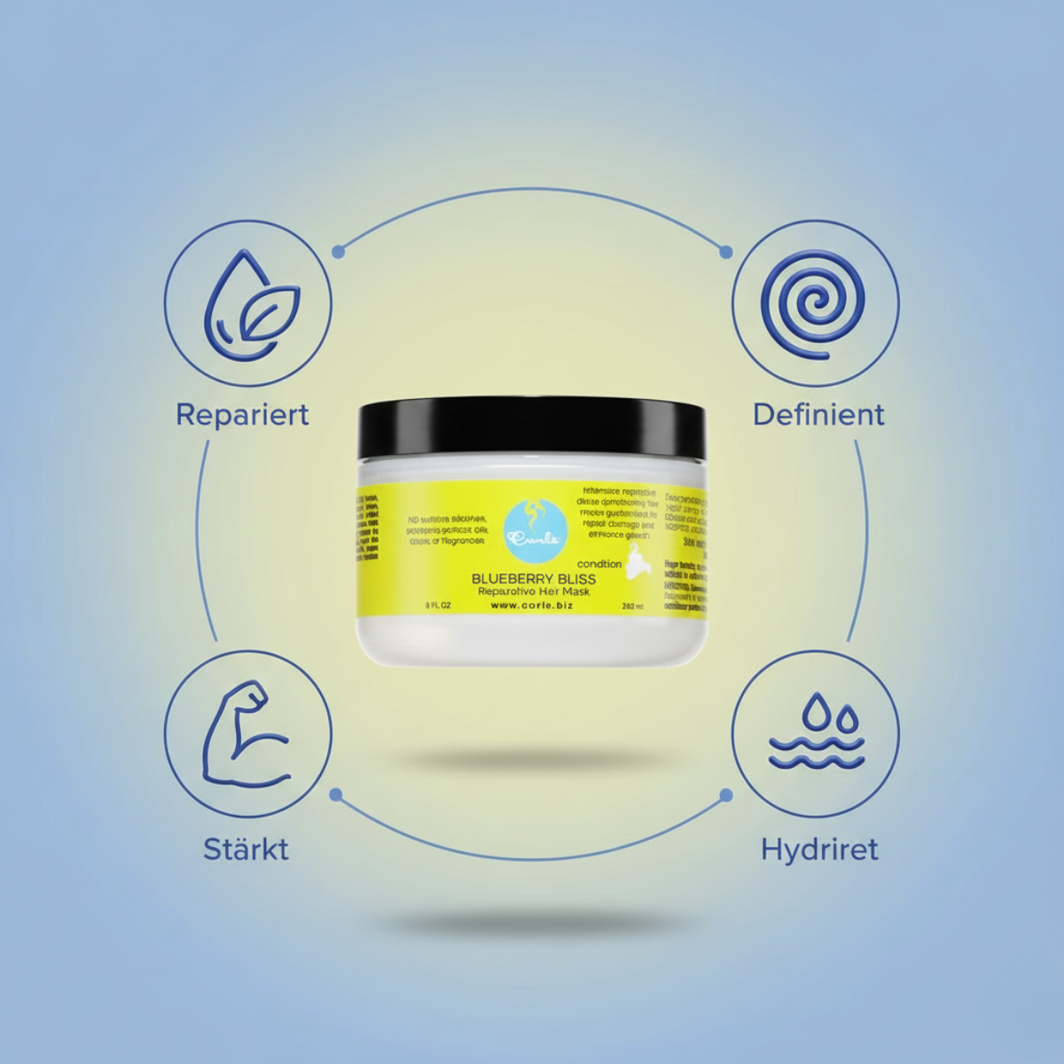 Intensive Blueberry Bliss Reparative Hair Mask – repariert geschädigtes Haar, stärkt die Struktur & spendet tiefe Feuchtigkeit. Für definierte, glänzende Locken aller Typen.