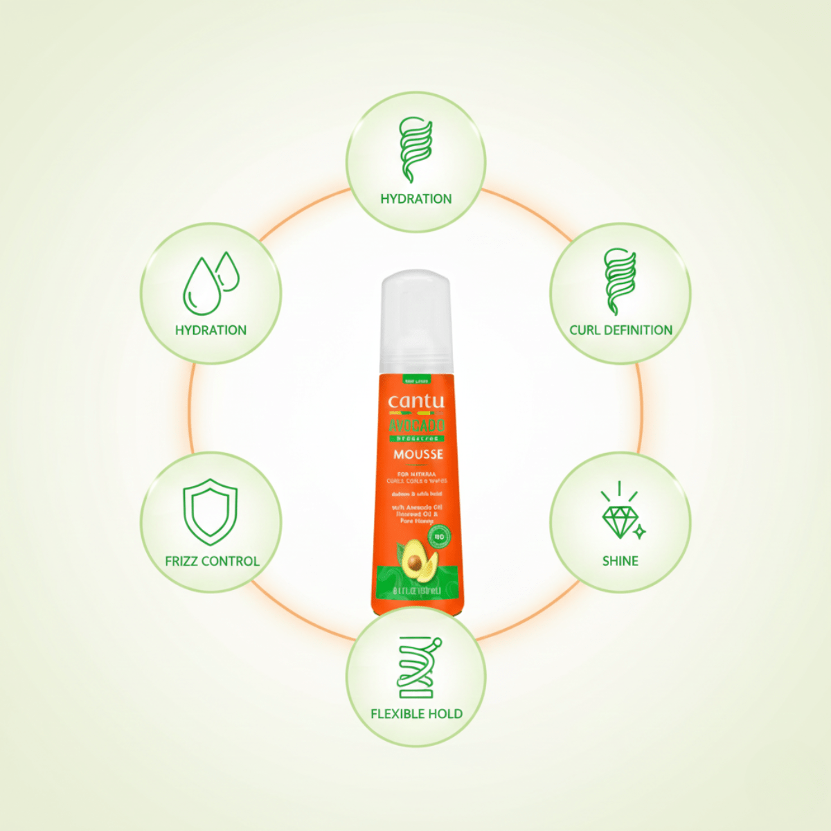 Cantu Avocado Styling Mousse – definierte, weiche Locken, flexiblem Halt & intensiver Feuchtigkeit. Perfekt für Twist-Outs, Wellen & Wash’n’Go.