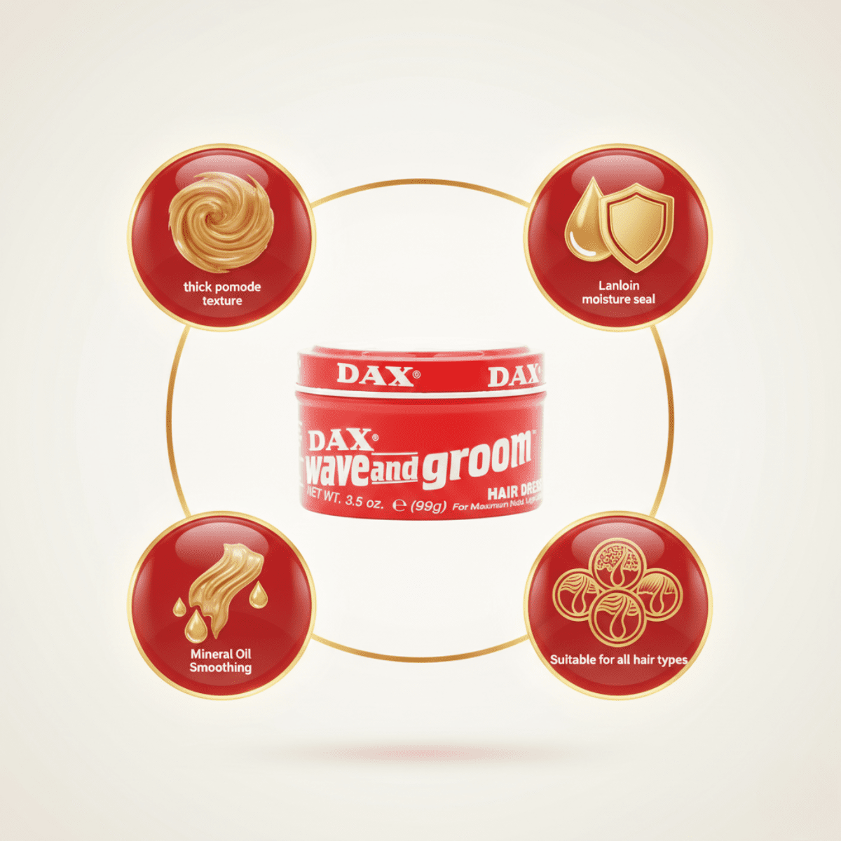 Dax Wave & Groom Hair Dressing is a thick hair dressing that has been specially developed to enhance the natural wave pattern in your hair. This hair care product not only allows you to accentuate your waves, but also perfects your look by spiking and shaping for a modern and edgy style.