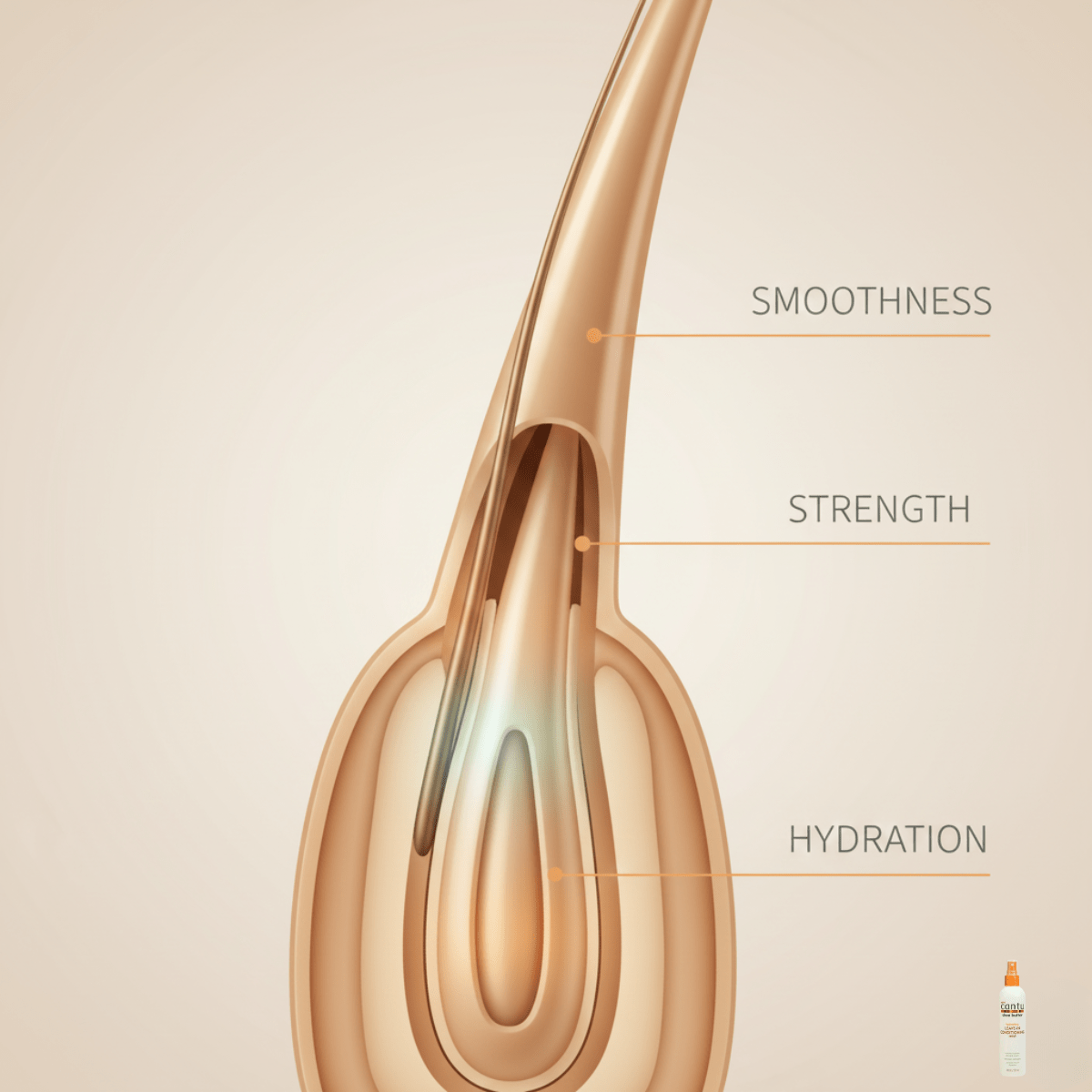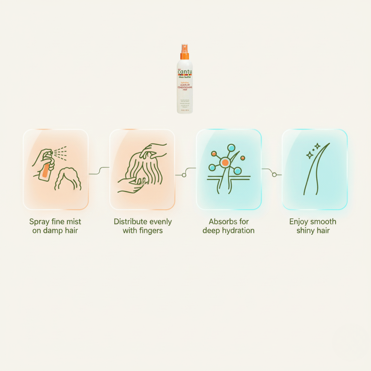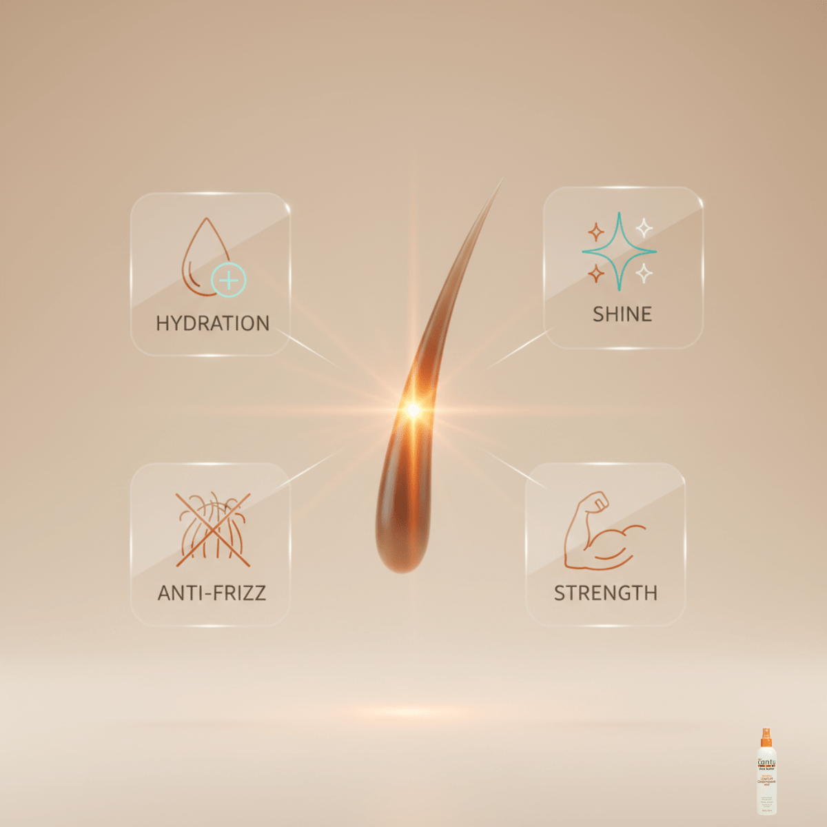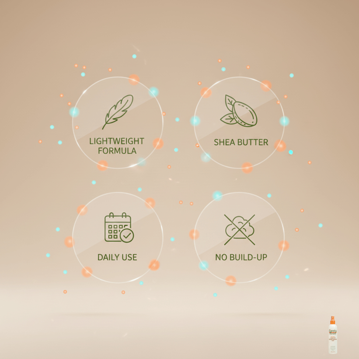 Cantu Shea Butter Hydrating Leave-in Conditioning Mist, enriched with pure shea butter, is particularly effective at restoring vital lost moisture to hair. Thanks to its unique formula, the mist detangles hair, minimizes breakage and protects against unwanted frizz and flyaways.
