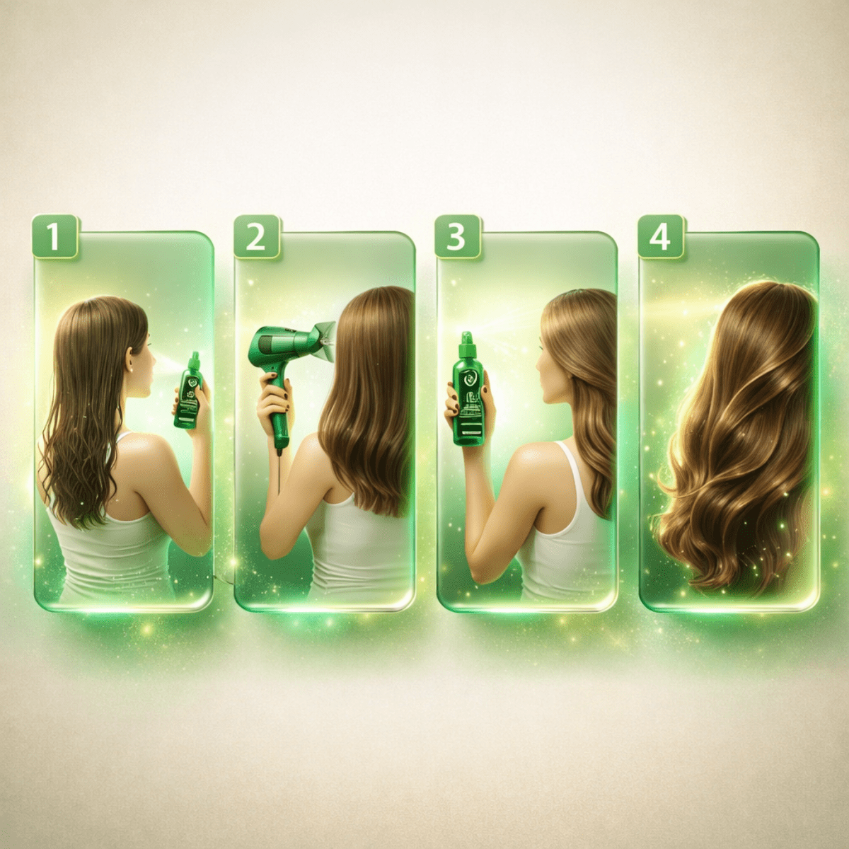 3️⃣ Nach dem Styling erneut leicht aufsprühen, um zusätzlichen Glanz zu verleihen.