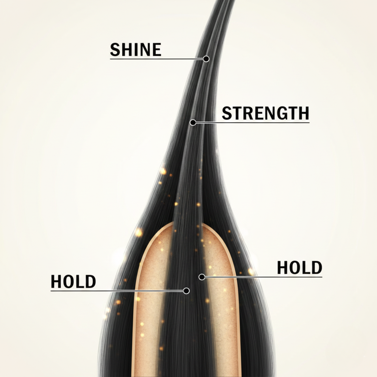 • Royal jelly is rich in amino acids, glucose, proteins and vitamins, which help strengthen and nourish hair from root to tip.