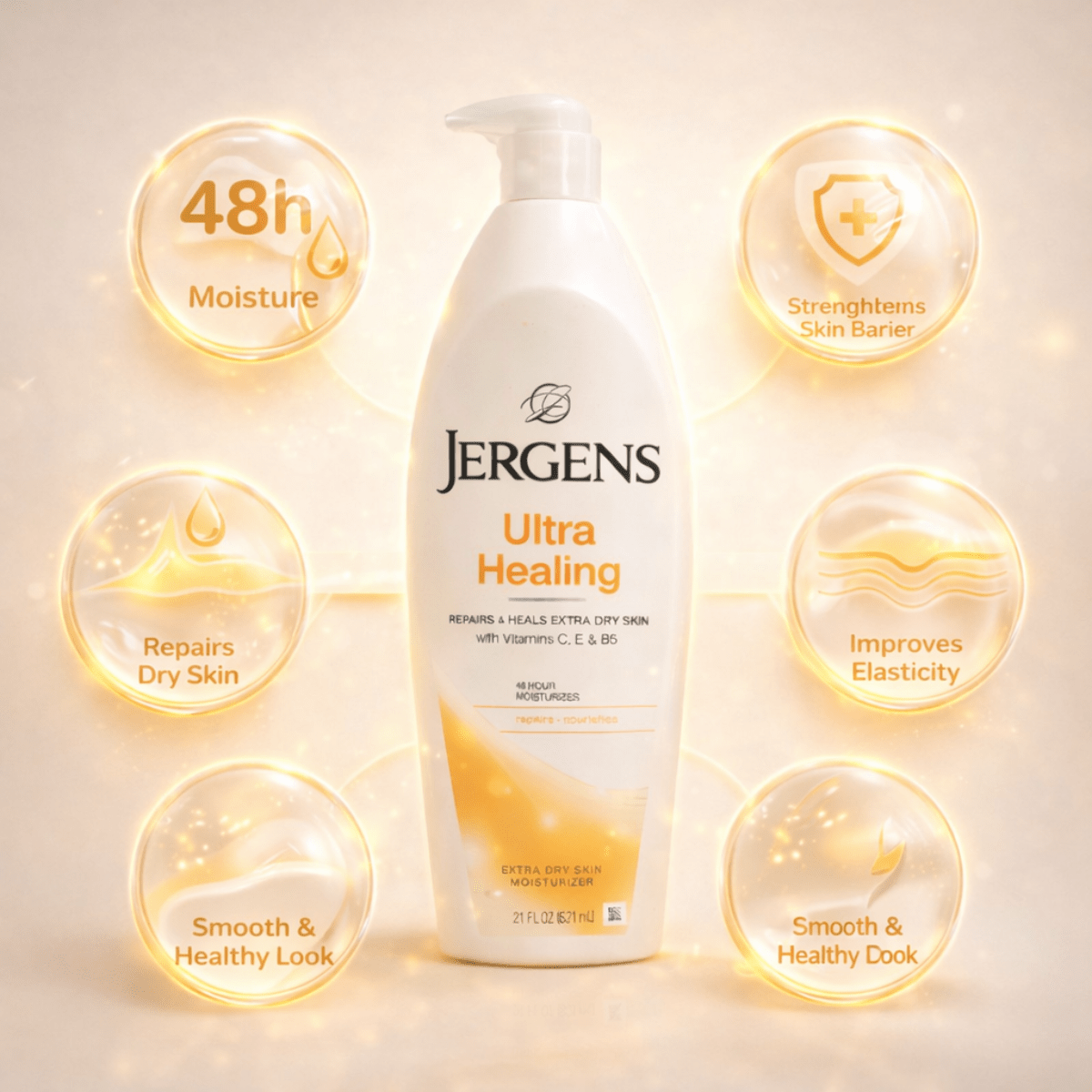 Relieves dry skin – Jergens Ultra Healing Moisturizer improves the appearance and texture of skin.